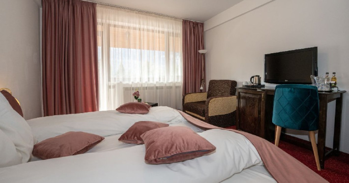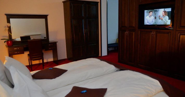 - 3 Duble executive fara balcon (mansardate): 2 paturi unite, 1 fotoliu extensibil, minibar (contracost), cafetiera (cafea si ceai din partea casei), TV plat, cablu tv, wi-fi;