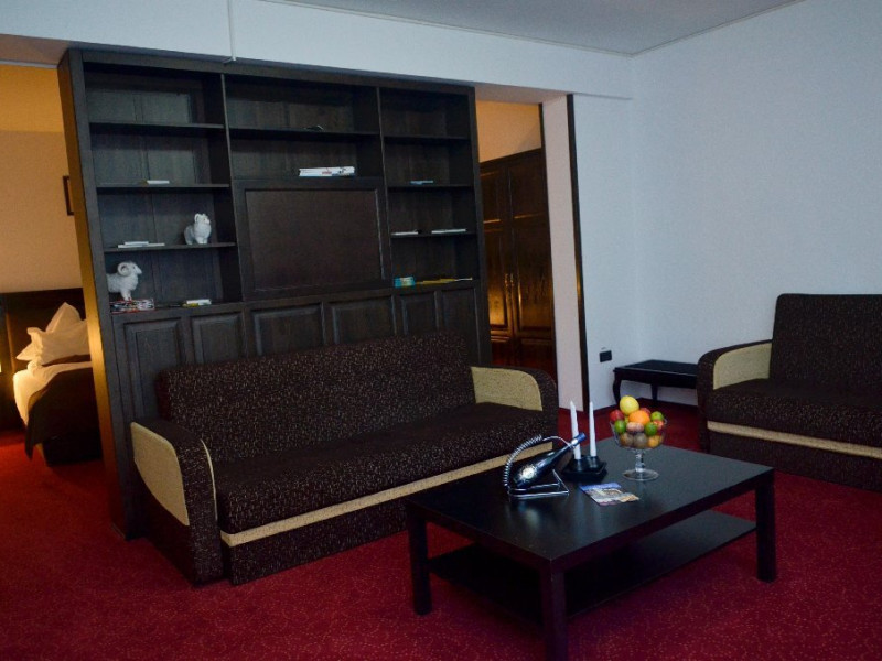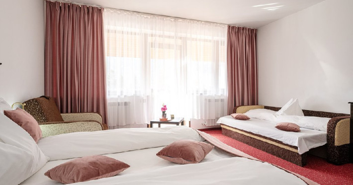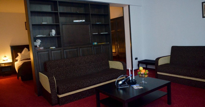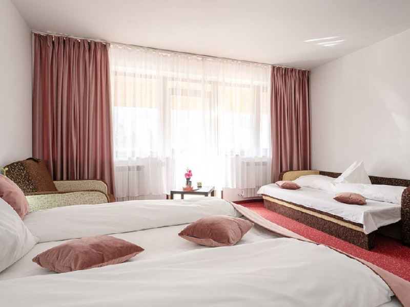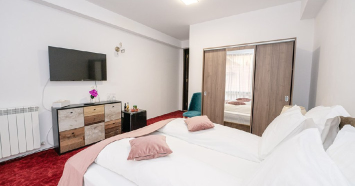 - 4 Duble deluxe cu pat matrimonial + canapea extensibila + un fotoliu extensibil, minibar (contracost), cafetiera (cafea si ceai din partea casei), balcon TV plat, cablu tv, wi-fi.