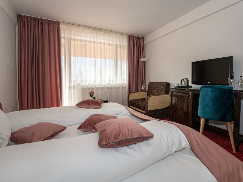 Inconjurat de privelistea maiestuoasa a Muntilor Bucegi, intr-un decor feeric, acest loc magic te va ajuta sa te detasezi de agitatia urbana. Insa nu doar paradisul naturii din jur te va scapa de stres, ci si eleganta si rafinamentul complexului hotelier, care te vor conduce intr-un ambient luxos, fiind locul ideal atat pentru relaxare, distractie dar si pentru o calatorie de afaceri.