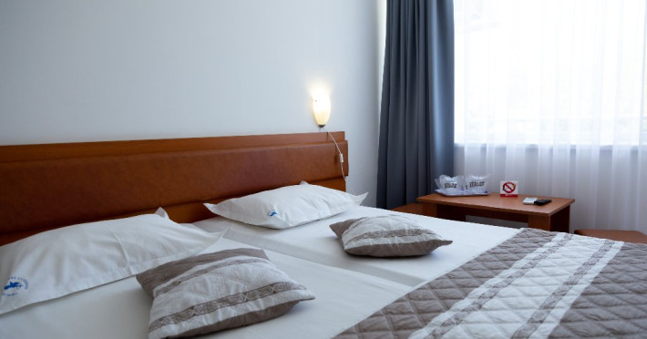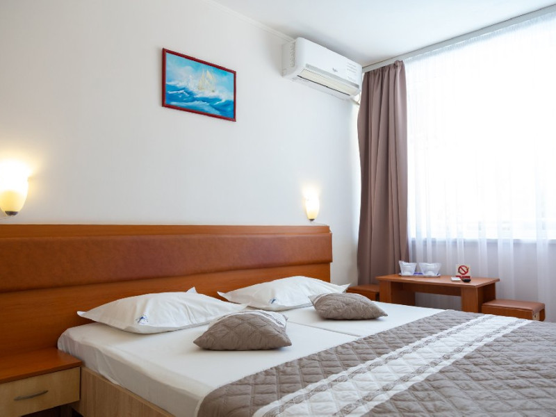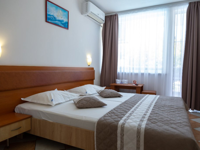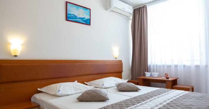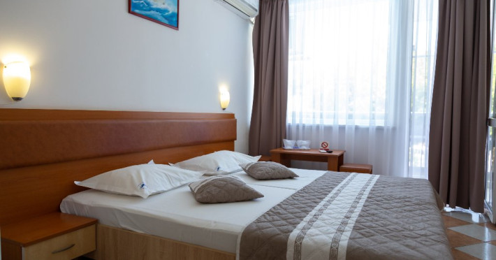 Dotari camere: balcon, TV- LCD, aer conditionat, frigider, baie cu dus, pardoseala din gresie, tamplarie PVC cu geam termopan, pat matrimonial, plasa insecte, suport rufe, internet wireless, uscator de par, draperii blackout.