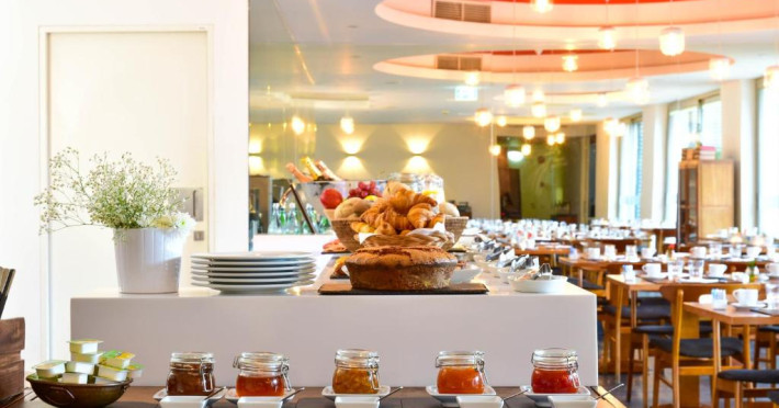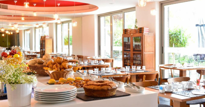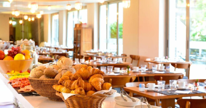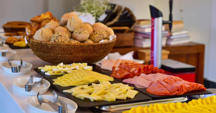 Hotelul găzduiește Restaurantul Book cu terasă, care servește o selecție de preparat din bucătăria portugheză, intr-o notă experimentală. Snack barul oferă o colecție de vinuri tradiționale, băuturi tari și băuturi răcoritoare. In centrul orașului, aflat in apropiere se găsesc numeroase restaurante care oferă preparate locale.