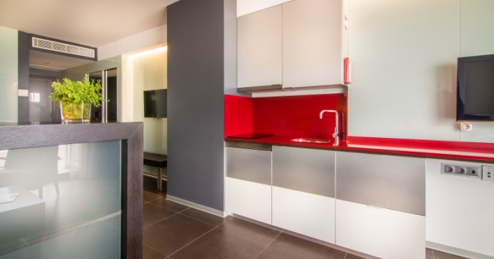 This establishment provides 158 comfortable suites with a modern designoverlooking spectacular views on the Praia da Rocha Beach or on the city ofPortimão and the Monchique Mountains. Each suite, most with areas of 40 m2 andbalconies 6 m2, is equipped with a king-size bed or 2 twin beds with highquality mattresses, air conditioning, 2 flat screen cable TV (room and livingarea), direct access telephone, free safety deposit box, minibar (extra cost)and with free internet Wi-Fi, kitchenware (tea and coffee utensils), microwave,electric kettle, fully equipped bathroom with shower, hairdryer, bath amenitiesand a balcony with furniture.