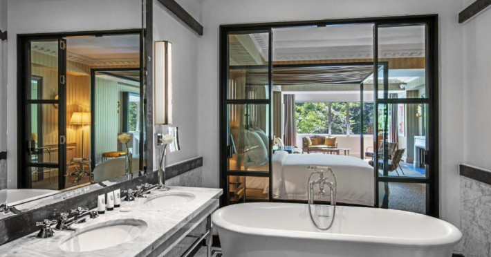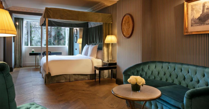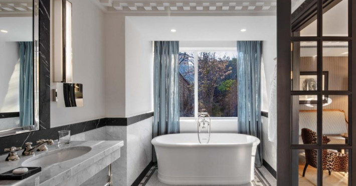 At Hôtel de Berri, a Luxury Collection Hotel, Paris most guest rooms overlook the hotel's park. All rooms feature parquet floors, high ceiling, large windows and marble fireplace. An Apple TV and automated mood lighting are also offered. Decorated with Italian marble, the private bathroom comes with rain shower, bathtub and luxury toiletries.