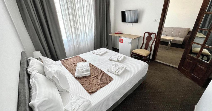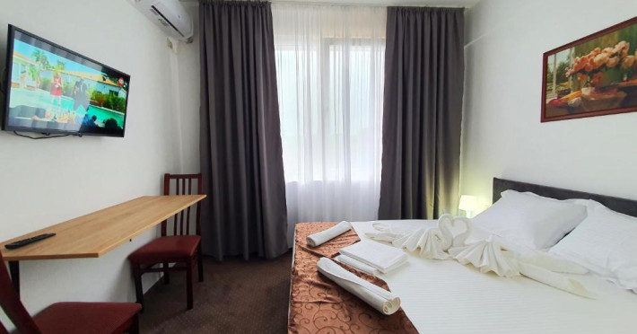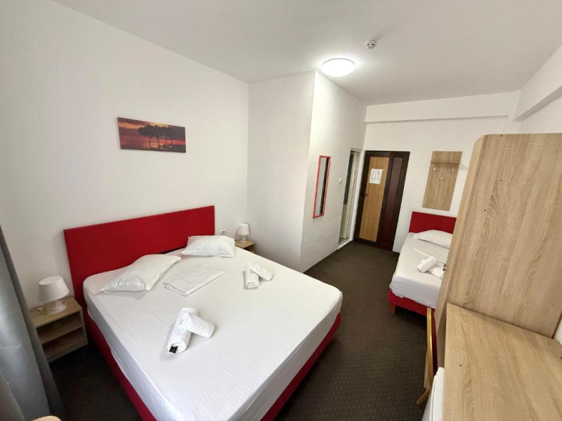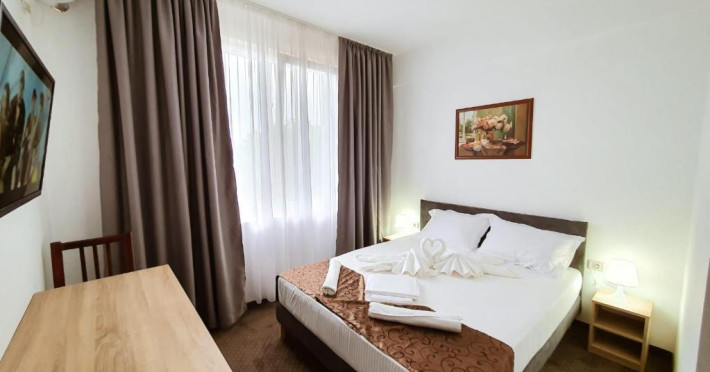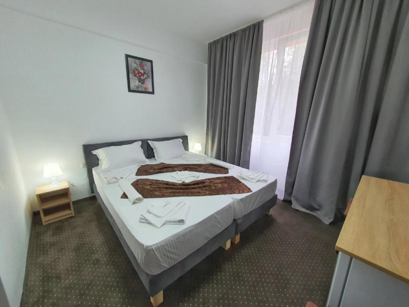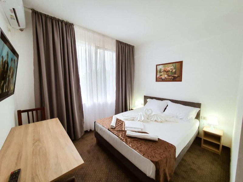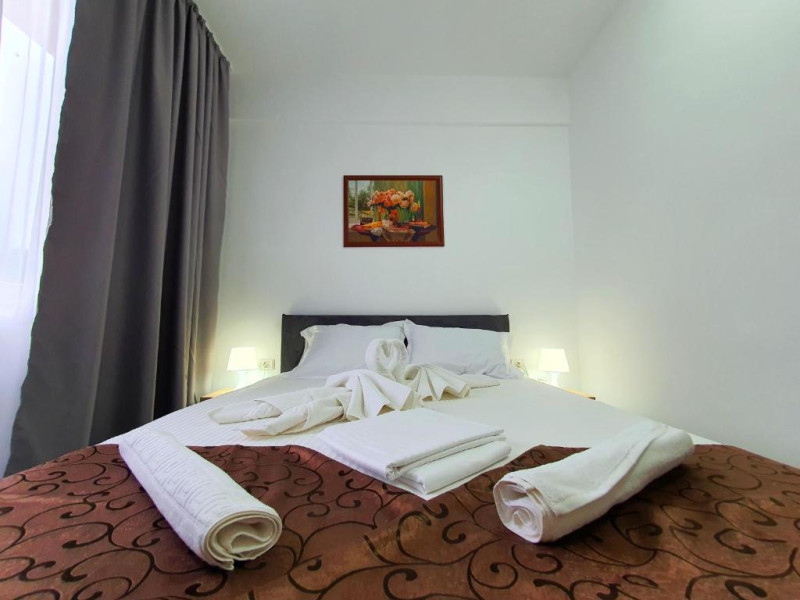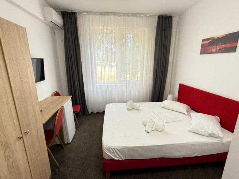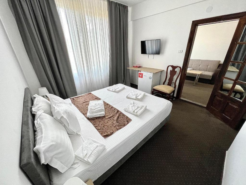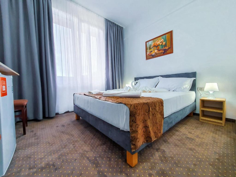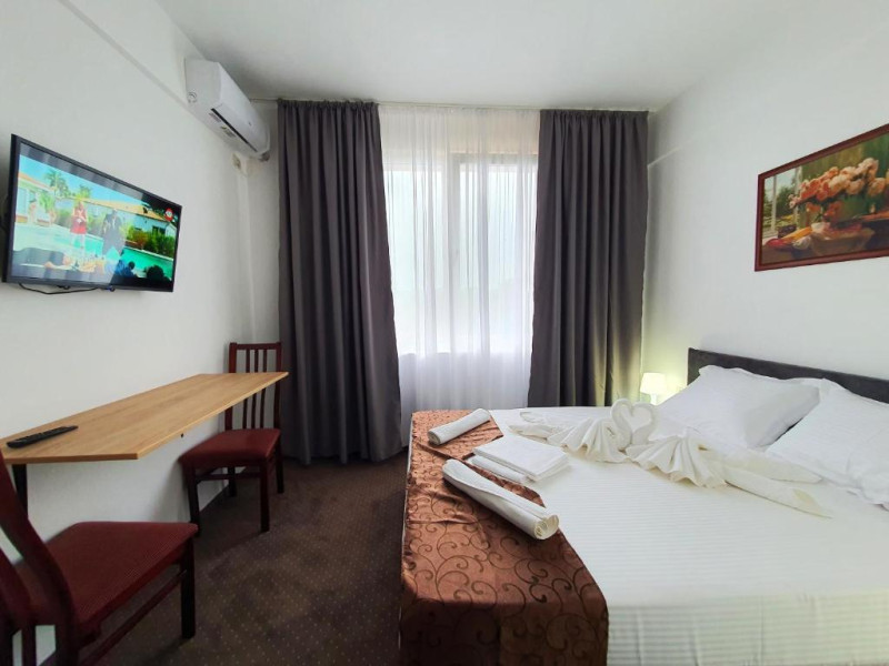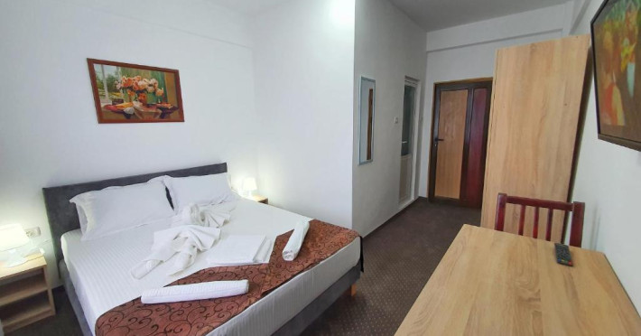 Complex Decebal 3*** Eforie Nord ofera o gama variata de facilitati pentru a asigura o experienta placuta oaspetilor. Printre amenitati se numara un bar, un restaurant si o terasa, unde oaspetii pot savura preparate delicioase si se pot relaxa in aer liber. De asemenea, complexul dispune de parcare privata, oferita gratuit in limita disponibilitatii, facilitand accesul vizitatorilor. Spatiile de cazare sunt confortabile si bine echipate, fiecare camera avand aer conditionat, televizor LCD, wi-fi gratuit, mini-frigider si baie privata cu cabina de dus. Aceste dotari asigura un sejur placut si relaxant, fiind ideale pentru familii, cupluri sau grupuri de prieteni care doresc sa se bucure de o vacanta la mare. In apropierea Complexului Decebal, oaspetii pot explora diverse atractii locale, inclusiv plajele din Eforie Nord si Baile reci de la Lacul Techirghiol, renumite pentru proprietatile lor terapeutice. Aceasta locatie strategica permite vizitatorilor sa se bucure de soare si mare, dar si de activitati recreative in natura. Pentru mesele principale, restaurantul complexului ofera o varietate de preparate, adaptate gusturilor diversificate ale oaspetilor. Fie ca este vorba de mic dejun, pranz sau cina, mesele sunt pregatite cu ingrediente proaspete si de calitate, asigurand o experienta culinara de neuitat.