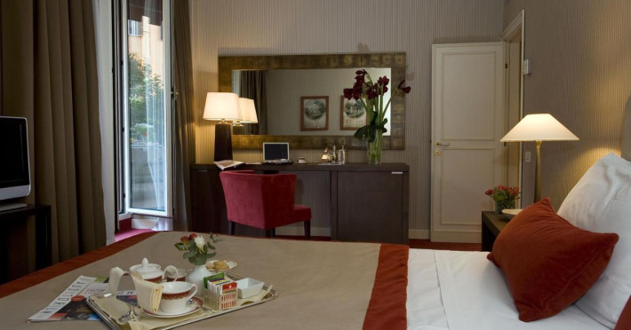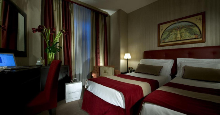 Acest hotel de 4 stele este situat intr-o clădire elegantă din secolul al XIX-lea. Oferă o curte interioară linistită si se află la mai putin de 5 minute de mers pe jos de Fantana Trevi si Treptele Spaniole.