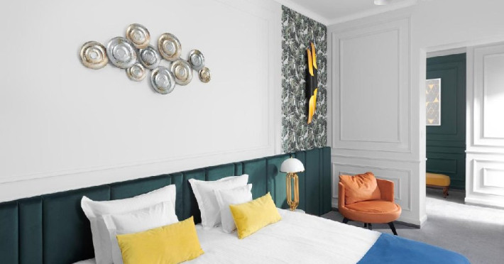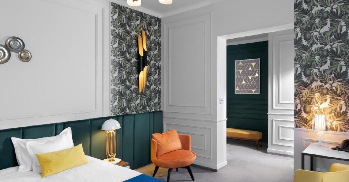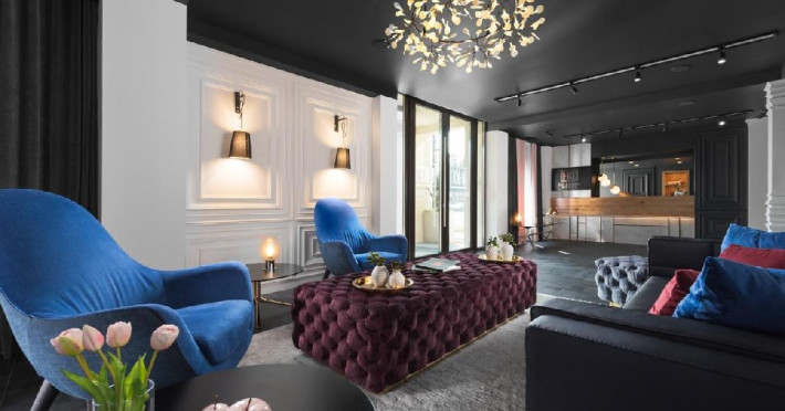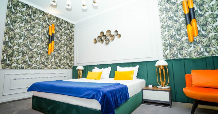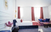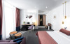 Camera executive - Camera premium (32-35 mp), pat dimensiune king, saltea premium, canapea extensibila, masuta de cafea, birou de lucru, seif pentru laptop, smart TV, minibar, aer conditionat, halat baie si papuci, uscator par, facilitati preparare ceai, baie cu dus; Espressor cu pastile Julius Meinl; Etaj superior; Cosmetice Rituals.