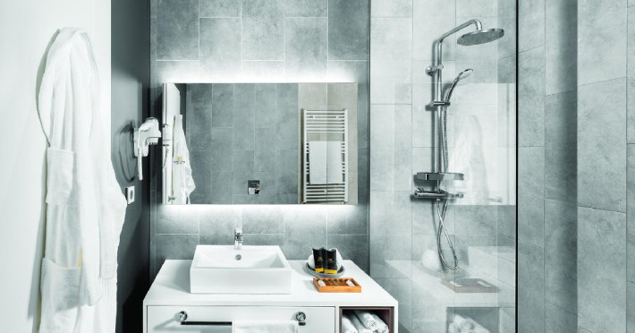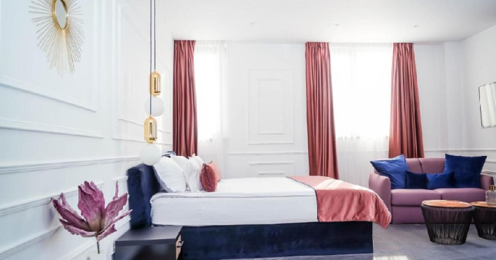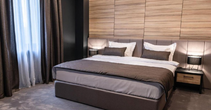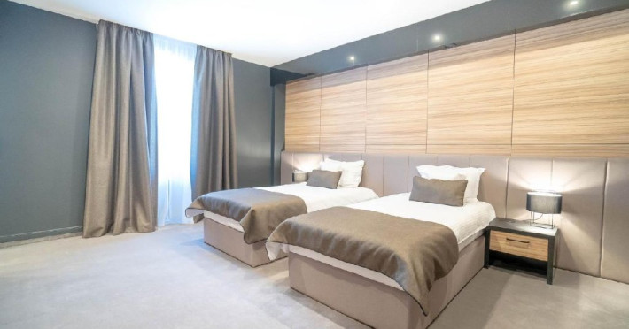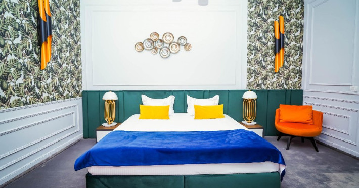 Camera dubla deluxe - Camera spatioasa (26-30 mp), pat dimensiune king, saltea premium, birou de lucru, seif pentru laptop, smart TV, minibar, aer conditionat, halat baie si papuci, uscator par, facilitati preparare ceai, baie cu dus; Etaj superior; Cosmetice Rituals;