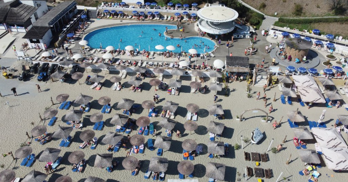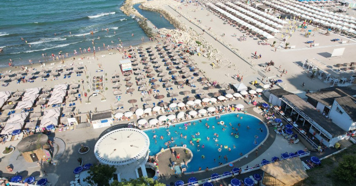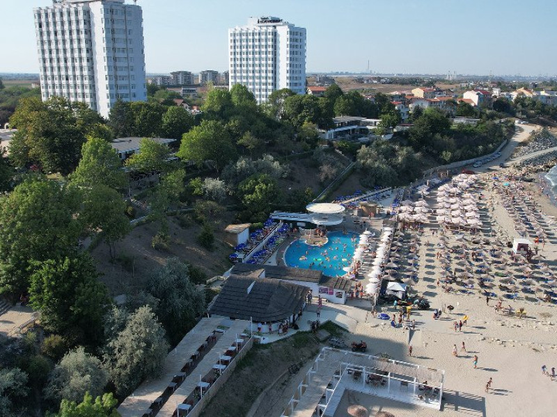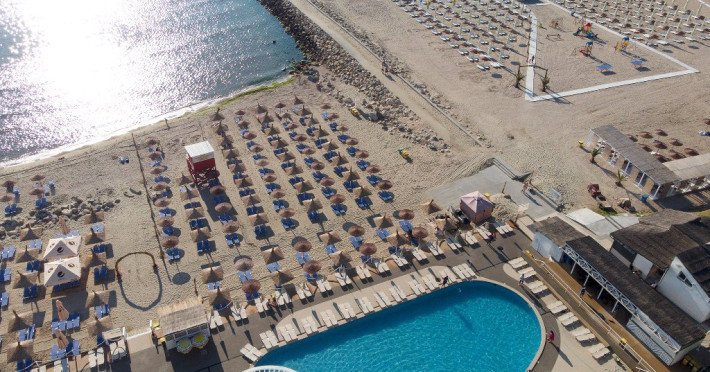 Situat la numai 100 de metri de noua plaja largita, complexul dispune de plaja proprie cu sezlonguri si umbrele de plaja.