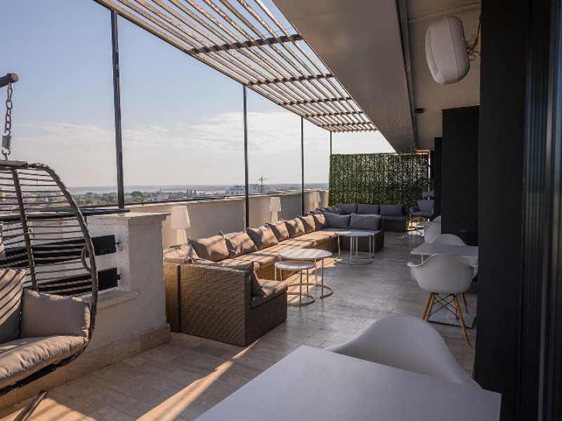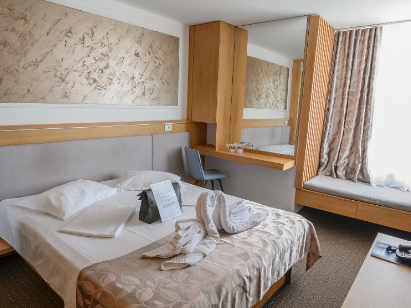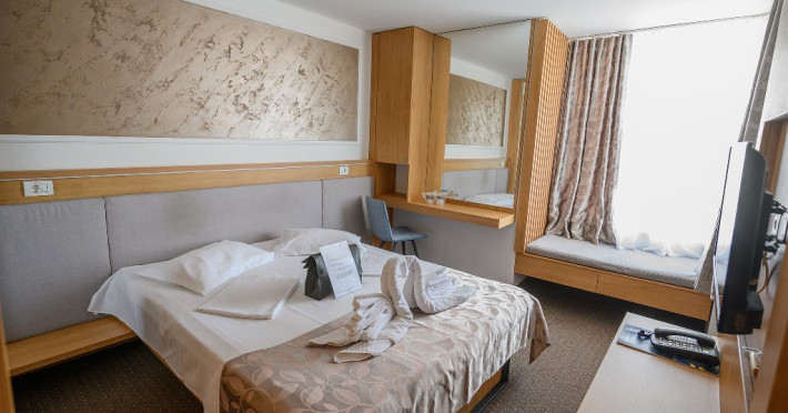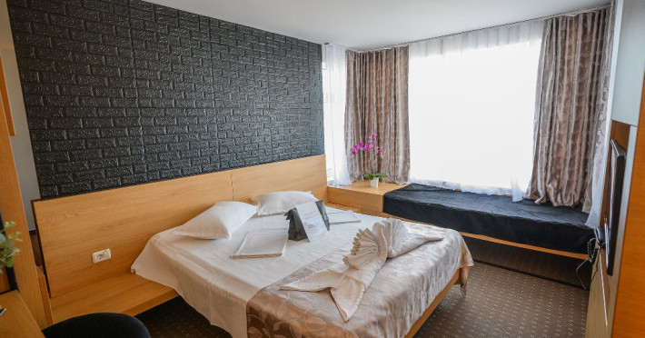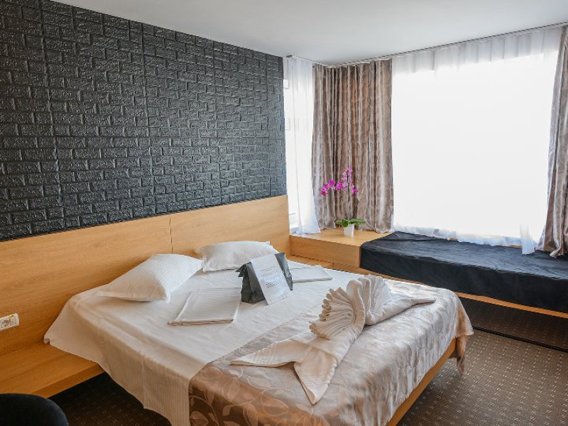 Camerele duble cu pachet Superior din cadrul Hotelului Delfinul ofera vedere partiala catre Marea Neagra si sunt situate la etajele superioare ale hotelului.