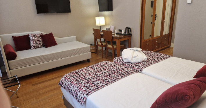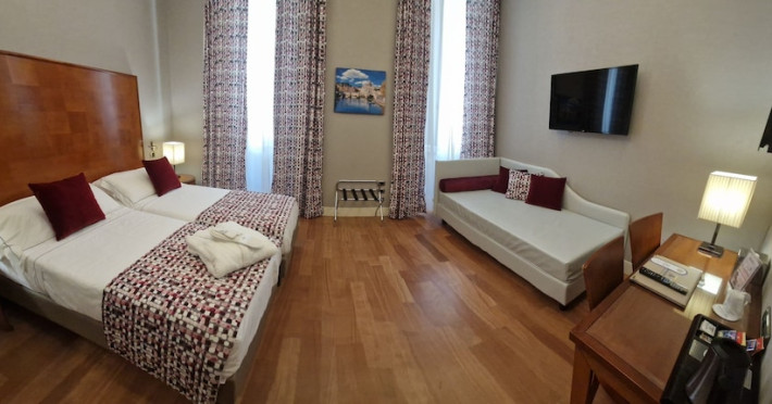 Take in the views from a rooftop terrace and make use of amenities such as complimentary wireless internet access and concierge services. Additional features at this hotel include babysitting (surcharge), a television in a common area, and a banquet hall.lt;stronggt;Property Locationlt;/stronggt;lt;pgt;With a stay at Hotel Delle Nazioni, youapos;ll be centrally located in Rome, steps from Trevi Fountain and 7 minutes by foot from Spanish Steps. This hotel is 0.5 mi (0.7 km) from Pantheon and 0.6 mi (1 km) from Piazza Navona.lt;brgt; Distances are displayed to the nearest 0.1 mile and kilometer. lt;br /gt; lt;pgt;Via del Tritone - 0.1 km / 0.1 mi lt;br /gt; Trevi Fountain - 0.1 km / 0.1 mi lt;br /gt; Via del Corso - 0.3 km / 0.2 mi lt;br /gt; Piazza Barberini - 0.5 km / 0.3 mi lt;br /gt; Via Condotti - 0.6 km / 0.4 mi lt;br /gt; Spanish Steps - 0.6 km / 0.4 mi lt;br /gt; Piazza di Spagna - 0.6 km / 0.4 mi lt;br /gt; Sistina Theater - 0.6 km / 0.4 mi lt;br /gt; Palazzo Barberini - 0.6 km / 0.4 mi lt;br /gt; Via del Babuino - 0.6 km / 0.4 mi lt;br /gt; Piazza Venezia - 0.7 km / 0.4 mi lt;br /gt; Quirinale Palace - 0.7 km / 0.4 mi lt;br /gt; Pantheon - 0.7 km / 0.5 mi lt;br /gt; Via Veneto - 0.7 km / 0.5 mi lt;br /gt; Palazzo Venezia - 0.8 km / 0.5 mi lt;br /gt; lt;/pgt;lt;pgt;The nearest airports are:lt;br /gt;Ciampino Airport (CIA) - 29.6 km / 18.4 milt;br /gt; Fiumicino - Leonardo da Vinci Intl. Airport (FCO) - 31.6 km / 19.7 milt;br /gt; lt;/pgt;lt;pgt;The preferred airport for Hotel Delle Nazioni is Fiumicino - Leonardo da Vinci Intl. Airport (FCO). lt;/pgt;lt;brgt; lt;stronggt;Roomslt;/stronggt;lt;pgt;Make yourself at home in one of the 79 air-conditioned rooms featuring minibars and flat-screen televisions. Your bed comes with down comforters and premium bedding. Complimentary wired and wireless internet access keeps you connected, and satellite programming provides entertainment. Bathrooms feature bathtubs or showers, complimentary toiletries, and bidets.lt;pgt; lt;stronggt;Dininglt;/stronggt;lt;pgt;Satisfy your appetite at the hotelapos;s coffee shop/cafe, or stay in and take advantage of the room service (during limited hours). Wrap up your day with a drink at the bar/lounge. Buffet breakfasts are available daily from 7:00 AM to 10:00 AM for a fee.lt;pgt; lt;stronggt;Business, Other Amenitieslt;/stronggt; lt;pgt;Featured amenities include complimentary wired internet access, limo/town car service, and express check-in. Planning an event in Rome? This hotel has 775 square feet (72 square meters) of space consisting of conference space and 2 meeting rooms. A roundtrip airport shuttle is provided for a surcharge (available 24 hours), and self parking (subject to charges) is available onsite.lt;pgt;Datorita dinamicitatii domeniului disponibilitatea ofertelor se modifica de la un moment la altul. De aceea ofertele sunt valabile in limita locurilor disponibile. Agentia nu este responsabila pentru eventualele neconcordante care pot aparea intre informatiile privind tarifele si alte detalii din site si informatiile primite in agentie. In aceste cazuri vor avea prioritate, intotdeauna, informatiile primite in agentie.