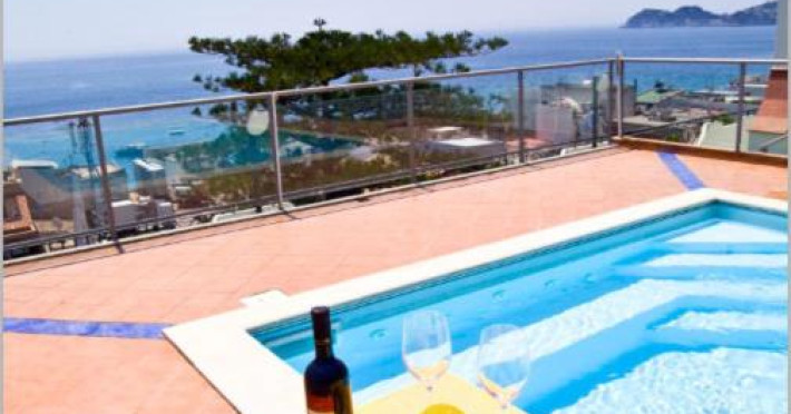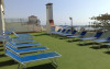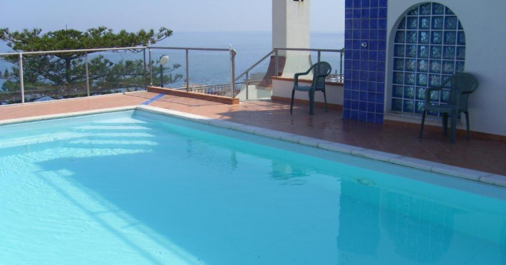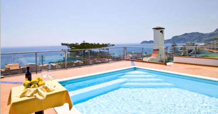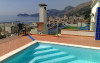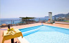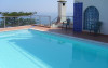 Terasa este dotată cu șezlonguri și umbrele de soare, iar piscina are un colț cu hidromasaj.