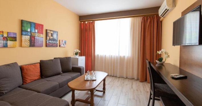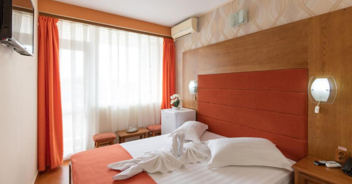 Facilități cameră dublă: pat matrimonial sau twin, baie proprie cu cadă sau duș, aer condiționat, televizor, telefon, uscător de păr, internet Wifi, frigider, seif, balcon.