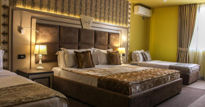 Hotelul Deluxe este situat in Tirana, la 2,6 km de Piața Skenderberg. Hotelul de 4 stele are camere cu aer condiționat, baie privată și WiFi gratuit. Proprietatea are un restaurant și o grădină. Sky Tower este la 2,5 km.