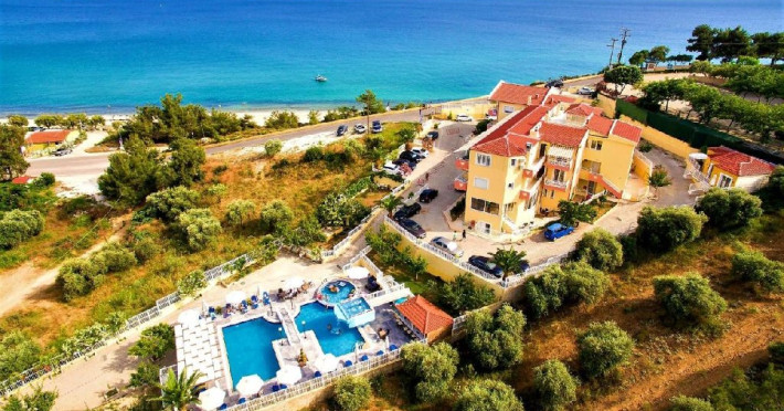 Localizare: Hotelul Diamond se afla pe un deal, la iesirea din statiunea Limenaria, oferind o frumoasa priveliste spre marea Egee.Plaja hotelului nu este nisipoasa, dar amplasarea unitatii de cazare permite accesul facil la mai multe plaje din insula.