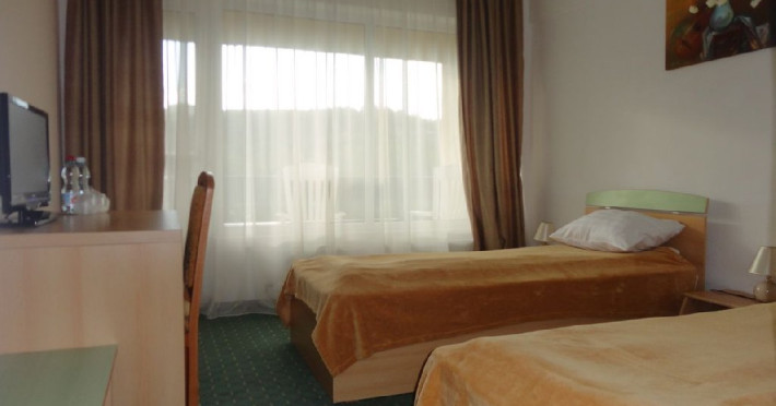 DESCRIERE CAMERE: dispune de 152 locuri de cazare structurate in 64 camere cu 2 locuri (2 paturi sau pat matrimonial), 4 camere cu trei paturi, 2 camere single si 4 apartamente. Toate camerele au balcon, baie cu dus si sunt dotate cu frigider si TV cu transmisie prin cablu.