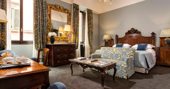 Hotelul de 5 stele și decor de lux d’Inghilterra Roma – Starhotels Collezione se află in inima orașului Roma, la 200 m de Treptele Spaniole și la cațiva pași de strada comercială populară Via del Corso.