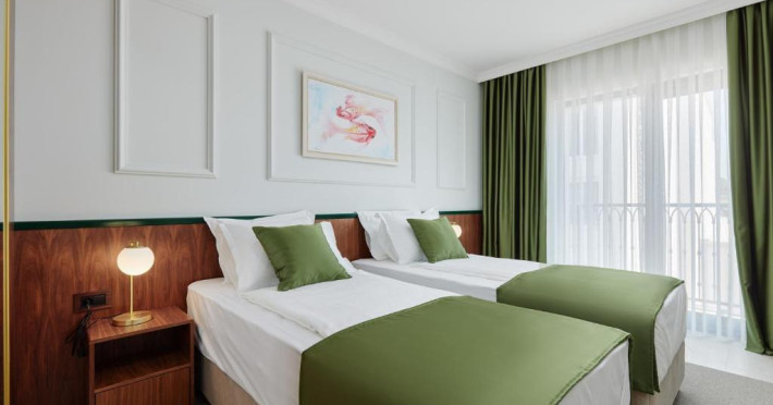 Hotel Diplomat se află la 12 minute de mers pe jos de Plaja Dukley și la 1,8 km de Plaja Becici. Cel mai apropiat aeroport este Aeroportul Tivat, situat la 18 km de acest hotel.