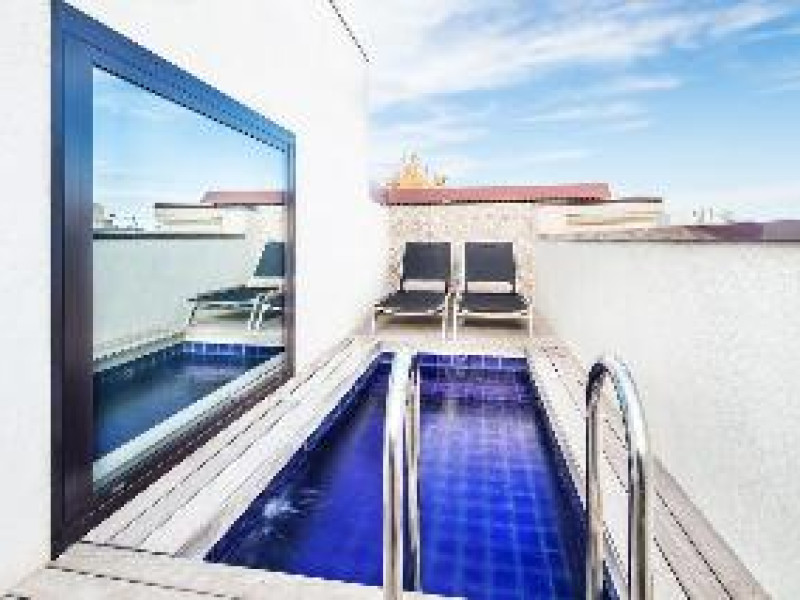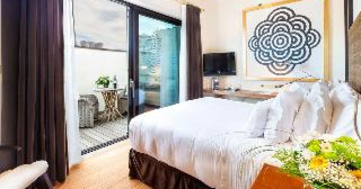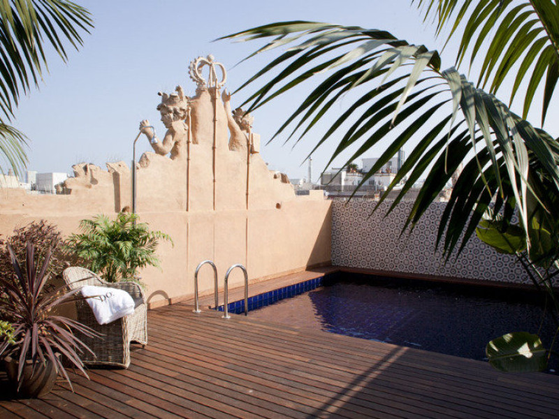 The hotel is conveniently situated just a 5-minute walk from Las Ramblas in Barcelona. Nearby attractions include the Boquería Market, the cathedral, the Palau Güell, Santa María del Mar, the Picasso Museum and the Port of Barcelona. Barcelona El Prat International Airport is just 18 km away. The charming hotel features modern rooms inside a historic building dating back to 1856 that was renovated in 2011. The hotel consists of 18 luxury rooms. The premises are air-conditioned and guests are welcomed in the lobby, which offers a 24-hour reception and a 24-hour check-out service. There is also a hotel safe, cloakroom and lift access to the upper floors. Guests can enjoy a drink at the café and the hotel has 2 restaurants offering Mediterranean cuisine and tapas. Wireless Internet access is available. Guests can also enjoy the convenience of room and laundry services during their stay. All of the double rooms and suites are external and have views over the Plaza Real and/or Las Ramblas. The El Terrat room, which is on the roof, has a terrace with a private swimming pool for the people using that room. All rooms are en suite with a shower, bath and a hairdryer. Guests can enjoy a good night's rest on their king-size bed. Amenities include a direct dial telephone, satellite/cable TV, radio, hifi and Internet access. There is also a safe, minibar and an ironing set. Individually regulated air conditioning and individually regulated heating are standard features in all accommodation units. Each room has its own balcony or terrace. The hotel features a rooftop swimming pool, sun terrace with sun loungers and a spa where guests can pamper themselves with massage treatments. There is also a sauna and a steam room. The nearby beach is sandy.The hotel is conveniently situated just a 5-minute walk from Las Ramblas in Barcelona. Nearby attractions include the Boquería Market, the cathedral, the Palau Güell, Santa María del Mar, the Picasso Museum and the Port of Barcelona. Barcelona El Prat International Airport is just 18 km away. The charming hotel features modern rooms inside a historic building dating back to 1856 that was renovated in 2011. The hotel consists of 18 luxury rooms. The premises are air-conditioned and guests are welcomed in the lobby, which offers a 24-hour reception and a 24-hour check-out service. There is also a hotel safe, cloakroom and lift access to the upper floors. Guests can enjoy a drink at the café and the hotel has 2 restaurants offering Mediterranean cuisine and tapas. Wireless Internet access is available. Guests can also enjoy the convenience of room and laundry services during their stay. All of the double rooms and suites are external and have views over the Plaza Real and/or Las Ramblas. The El Terrat room, which is on the roof, has a terrace with a private swimming pool for the people using that room. All rooms are en suite with a shower, bath and a hairdryer. Guests can enjoy a good night's rest on their king-size bed. Amenities include a direct dial telephone, satellite/cable TV, radio, hifi and Internet access. There is also a safe, minibar and an ironing set. Individually regulated air conditioning and individually regulated heating are standard features in all accommodation units. Each room has its own balcony or terrace. The hotel features a rooftop swimming pool, sun terrace with sun loungers and a spa where guests can pamper themselves with massage treatments. There is also a sauna and a steam room. The nearby beach is sandy.