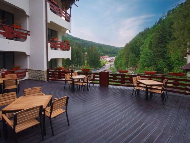 Complexul Dobru dispune de 41 de camere cu baie, televizor, minibar si balcon, de unde se poate admira peisajul inconjurator. Alaturi de acestea, dispunem de un restaurant elegant, cu 120 de locuri, ideal pentru evenimente; bar de zi; sala de conferinte cu o capacitate de 50 de locuri; parcare gratuita monitorizata video, si acces la complexul de agrement Teleconstructia, care dispune de piscina cu apa inclzita, sauna, jacuzzi, sala de fitness, tenis de masa, teren de tenis de camp acoperit.Datorita dinamicitatii domeniului disponibilitatea ofertelor se modifica de la un moment la altul. De aceea ofertele sunt valabile in limita locurilor disponibile. Agentia nu este responsabila pentru eventualele neconcordante care pot aparea intre informatiile privind tarifele si alte detalii din site si informatiile primite in agentie. In aceste cazuri vor avea prioritate, intotdeauna, informatiile primite in agentie.