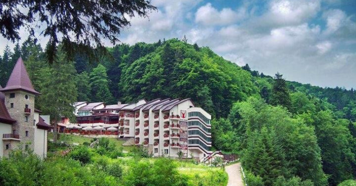 INFORMATII GENERALEComplexul hotelier Dobru este situat pe versantul estic al Carpatilor Orientali, in pitoreasca statiune Slanic Moldova, la o altitudine de 530 de metri. Cladirea este construita in trepte, pe un perete stancos abrupt aflat chiar de-a lungul cursului paraului Slanic. Oferte sejur minim 2 nopti cu mic dejun si masa in sistem fisa cont.