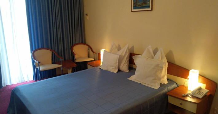 Facilități cameră dublă: pat matrimonial sau twin, baie proprie cu cadă sau duș, aer condiționat, televizor, uscător de păr, balcon.