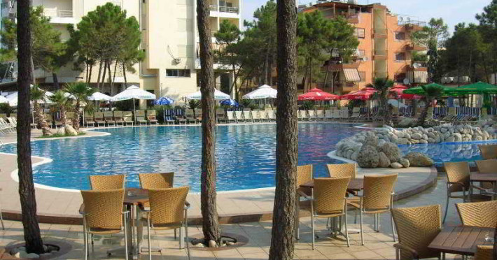 Beautifully situated on the Adriatic Sea, on 5,000 m², the hotel is a 7-floor building with 50 rooms, 4 bars, 3 restaurants, a pizzeria, a tavern, conference facilities, room service, a disco and a car park. Guests are welcomed to the air-conditioned establishment in a lobby with 24-hour reception. A hotel safe, currency exchange facilities, a newspaper stand, playground, café and a laundry service are also provided. With a beautiful sea view and a big garden with all kinds of flowers and trees, guests will find the hotel comfortable and relaxing.