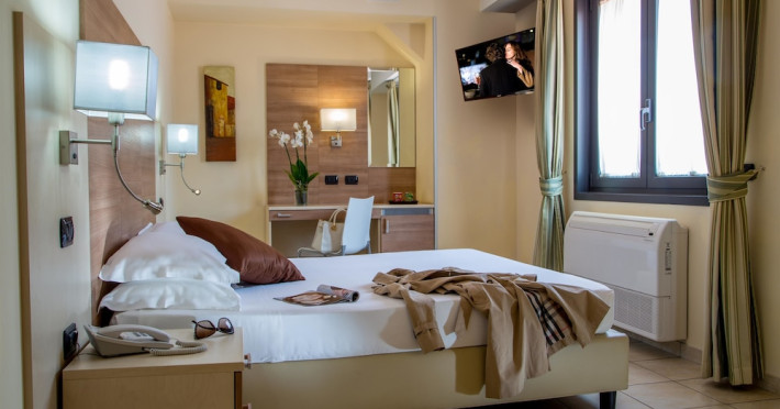 Make use of convenient amenities such as complimentary wireless internet access, concierge services, and a television in a common area. Guests can get around on the shuttle (surcharge), which operates within 5.00 km.lt;stronggt;Property Locationlt;/stronggt;lt;pgt;With a stay at Hotel Domidea in Rome, youapos;ll be 4.9 mi (7.9 km) from Roma Est and 8.9 mi (14.3 km) from Terme di Roma - Acque Albule. This upscale hotel is 5.9 mi (9.6 km) from Roman Forum and 6.3 mi (10.1 km) from Colosseum.lt;brgt; Distances are displayed to the nearest 0.1 mile and kilometer. lt;br /gt; lt;pgt;Via Nomentana - 5.7 km / 3.5 mi lt;br /gt; Jehovahapos;s Witnesses Kingdom Hall - 7 km / 4.3 mi lt;br /gt; Piazza Bologna - 7.3 km / 4.6 mi lt;br /gt; Roma Est - 7.9 km / 4.9 mi lt;br /gt; University of Roma-La Sapienza - 7.9 km / 4.9 mi lt;br /gt; General Command of the Guardia di Finanza - 8 km / 4.9 mi lt;br /gt; Piazza Vittorio Emanuele II - 8 km / 5 mi lt;br /gt; Via Marsala - 8.2 km / 5.1 mi lt;br /gt; Basilica di San Giovanni in Laterano - 8.4 km / 5.2 mi lt;br /gt; Via Appia Nuova - 8.6 km / 5.3 mi lt;br /gt; Via XX Settembre - 8.7 km / 5.4 mi lt;br /gt; Piazza Santa Maria Maggiore - 8.7 km / 5.4 mi lt;br /gt; Basilica di Santa Maria Maggiore - 8.8 km / 5.5 mi lt;br /gt; Teatro dellapos;Opera di Roma - 9.3 km / 5.7 mi lt;br /gt; Quirinale - 9.3 km / 5.8 mi lt;br /gt; lt;/pgt;lt;pgt;The nearest airports are:lt;br /gt;Ciampino Airport (CIA) - 18.1 km / 11.3 milt;br /gt; Fiumicino - Leonardo da Vinci Intl. Airport (FCO) - 44.9 km / 27.9 milt;br /gt; lt;/pgt;lt;pgt;The preferred airport for Hotel Domidea is Ciampino Airport (CIA). lt;/pgt;lt;brgt; lt;stronggt;Roomslt;/stronggt;lt;pgt;Make yourself at home in one of the 84 air-conditioned rooms featuring free minibar items and flat-screen televisions. Complimentary wireless internet access keeps you connected, and digital programming is available for your entertainment. Private bathrooms with showers feature complimentary toiletries and bidets. Conveniences include phones, as well as safes and desks.lt;pgt; lt;stronggt;Dininglt;/stronggt;lt;pgt;Satisfy your appetite at the hotelapos;s coffee shop/cafe, or stay in and take advantage of the room service (during limited hours). Wrap up your day with a drink at the bar/lounge. Full breakfasts are available daily for a fee.lt;pgt; lt;stronggt;Business, Other Amenitieslt;/stronggt; lt;pgt;Featured amenities include a computer station, express check-in, and express check-out. Planning an event in Rome? This hotel has 269 square feet (25 square meters) of space consisting of conference space and a meeting room. Limited parking is available onsite.lt;pgt;Datorita dinamicitatii domeniului disponibilitatea ofertelor se modifica de la un moment la altul. De aceea ofertele sunt valabile in limita locurilor disponibile. Agentia nu este responsabila pentru eventualele neconcordante care pot aparea intre informatiile privind tarifele si alte detalii din site si informatiile primite in agentie. In aceste cazuri vor avea prioritate, intotdeauna, informatiile primite in agentie.