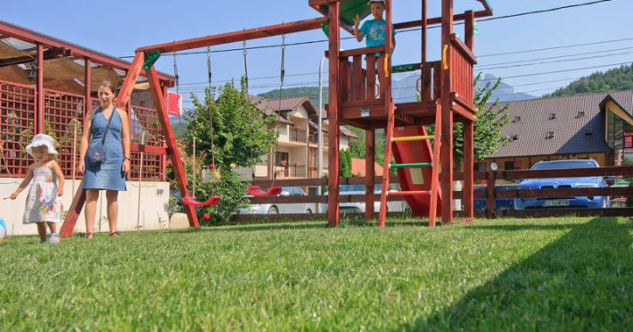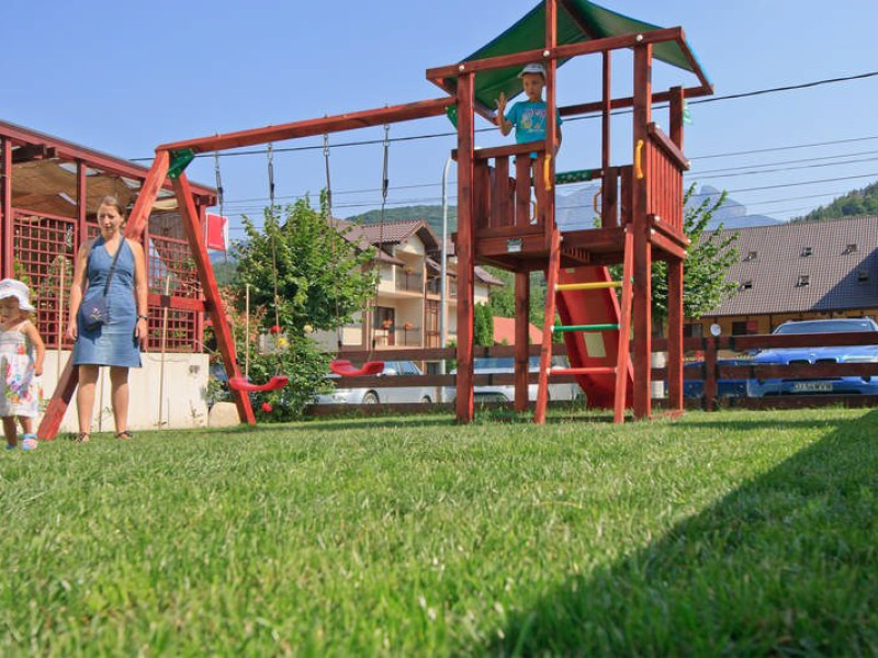 Hotelul are amenajat in exterior un mic loc de joaca.