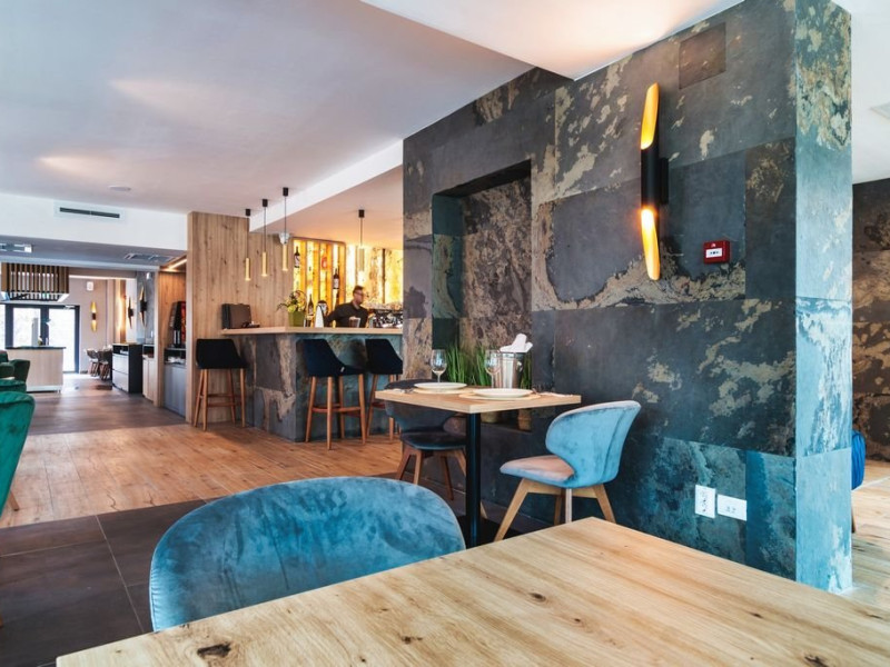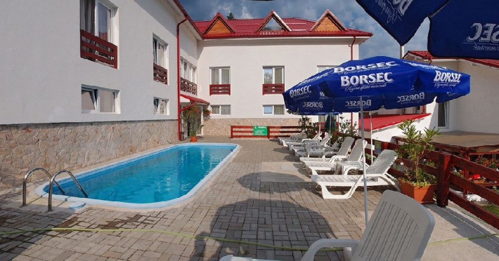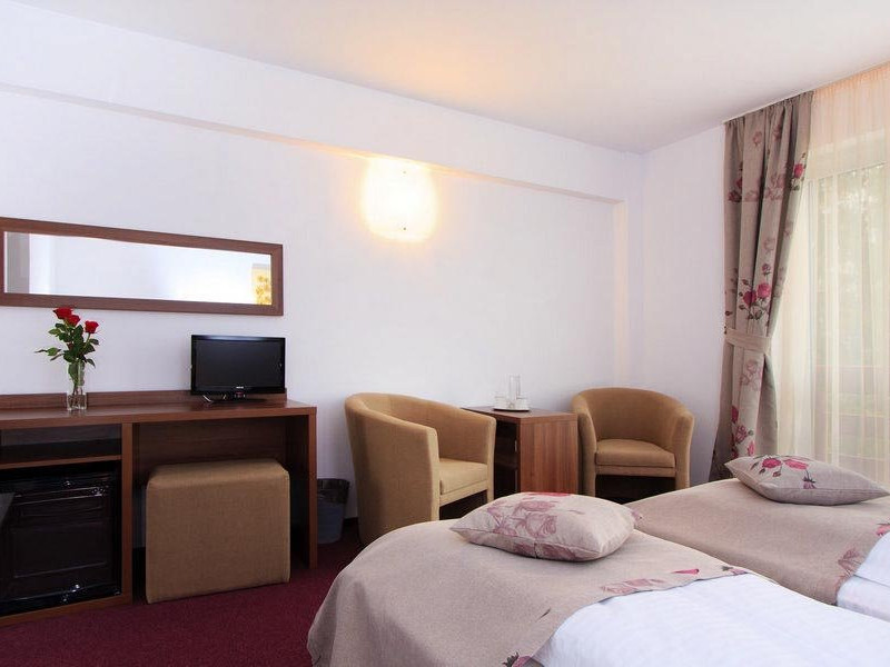 Hotelul dispune de restaurant, centru SPA, piscina exterioara (in sezon estival), baza de tratament, spatiu de joaca exterior pentru copii, parcare.