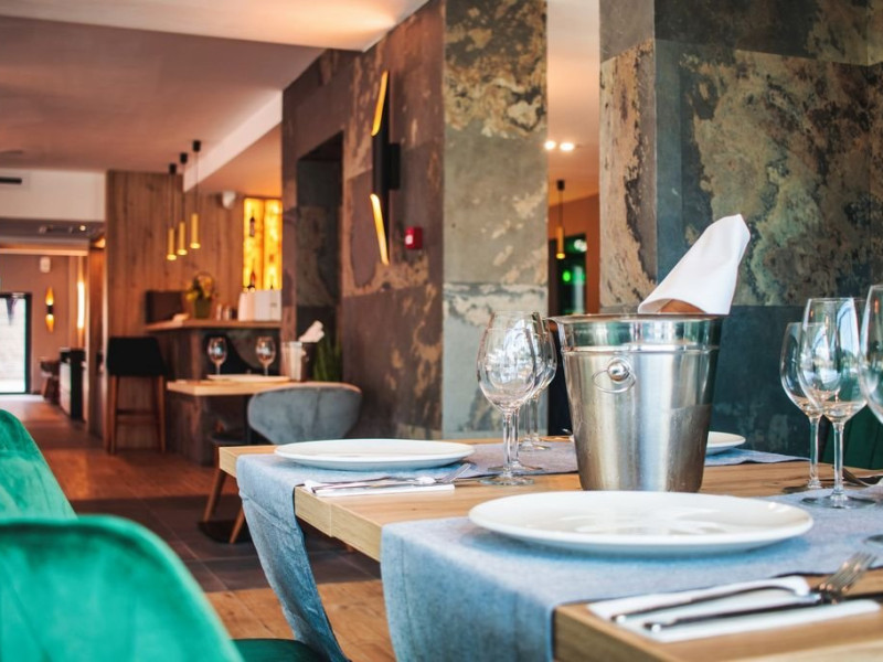 Hotelul dispune de restaurant, cu o capacitate de 80 de locuri. Mesele se servesc in regim bufet suedez sau fisa cont, in functie de oferta.