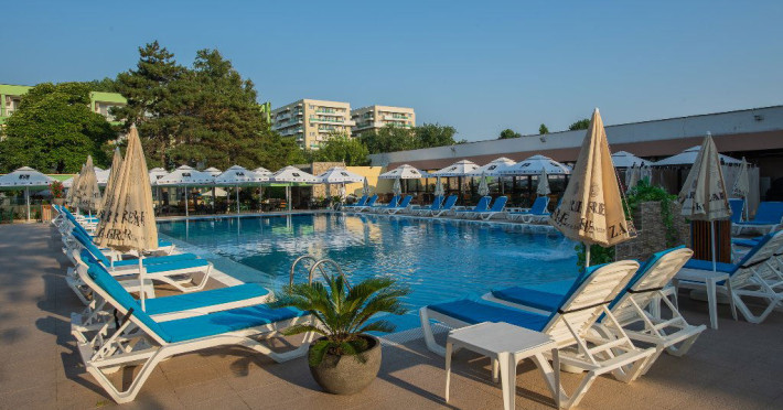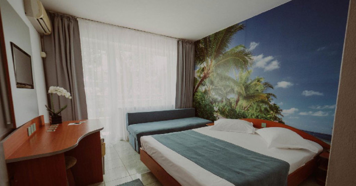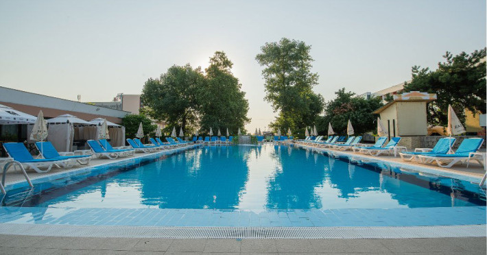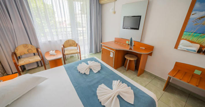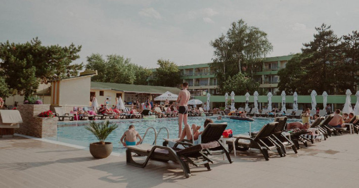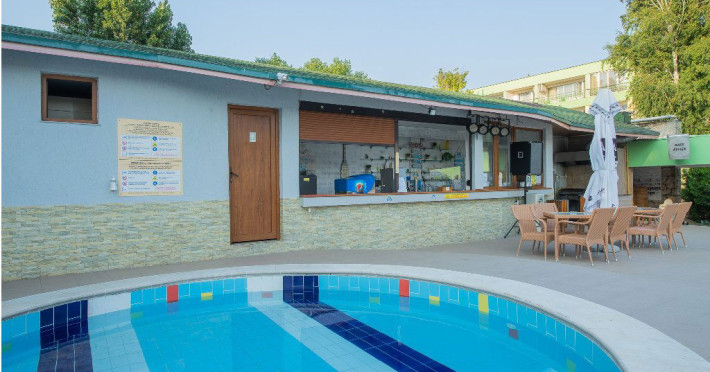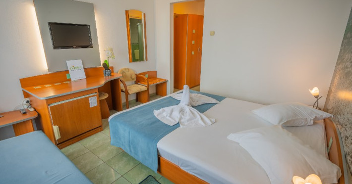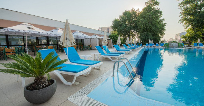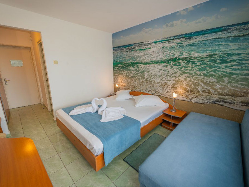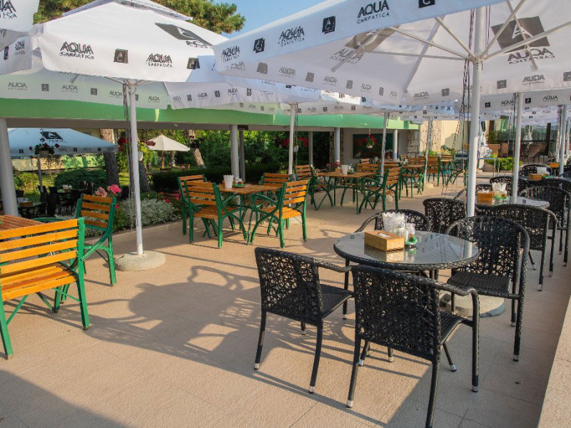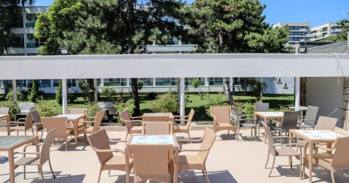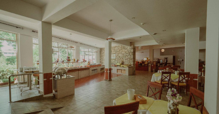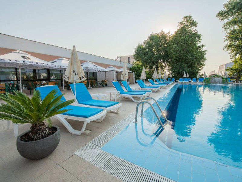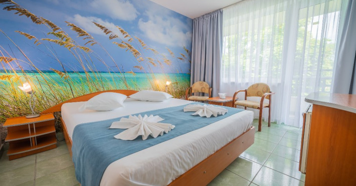 INFORMATII GENERALE Situat in nordul statiunii Mamaia, in zona verde, la 200m de apa marii, hotelul Dorna are o pozitie privilegiata cu vedere spre lacul Siutghiol si spre Marea Neagra. In imediata vecinatate a hotelului se afla terenuri de minigolf si tenis si un spatios loc de joaca pentru copii. Turistii beneficiaza pentru fiecare camera: 2 sezlonguri, umbrela pe plaja privata a hotelului FACILITATI UNITATE Dotari generale: restaurant, parcare publica -gratuita in limita disponibilitatilor, loc de joaca pentru copii, internet -wireless gratuit, pastrare obiecte de valoare, 3 nivele, bar. Hotelul dispune de plaja proprie (sezlongurile si umbrele de pe plaja sunt gratuite). Fitness/Wellness/Sport: Acces gratuit la piscina in aer liber pentru adulti si copii. Complexul ofera clientilor (gratuit - in limita disponibilitatilor): sezlonguri; umbrele si saltelute. Nu se poate face rezervare de sezlong. DESCRIERE CAMERE Camere cu balcon cu vedere la Marea Neagra sau la Lacul Siutghiol. Camerele Hotelului Dorna au aer condiionat, TV prin cablu, minibar i birou. Este disponibil acces gratuit la internet WiFi. LOCALIZARE Hotelul Dorna este situat la 200 de metri de plaja Ipanera din staiunea Mamaia, in nordul statiunii Mamaia. Plaja: larga, nisipoasa cu intrare lina in mare. SERVICII MASA Restaurantul Petit Jardin serveste o gama larga de mancaruri romanesti si internationale atat in interior, cat si pe terasa spatioasa. De asemenea, oaspetii pot savura o bautura langa piscina, pe terasa umbrita. Micul dejun este servit sub forma de bufet suedez. FACILITATI COPII 1 copil cu varsta 0-12 ani beneficiaza de cazare si mic dejun gartuit, in camera cu parintii.Datorita dinamicitatii domeniului disponibilitatea ofertelor se modifica de la un moment la altul. De aceea ofertele sunt valabile in limita locurilor disponibile. Agentia nu este responsabila pentru eventualele neconcordante care pot aparea intre informatiile privind tarifele si alte detalii din site si informatiile primite in agentie. In aceste cazuri vor avea prioritate, intotdeauna, informatiile primite in agentie.