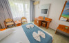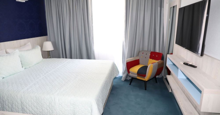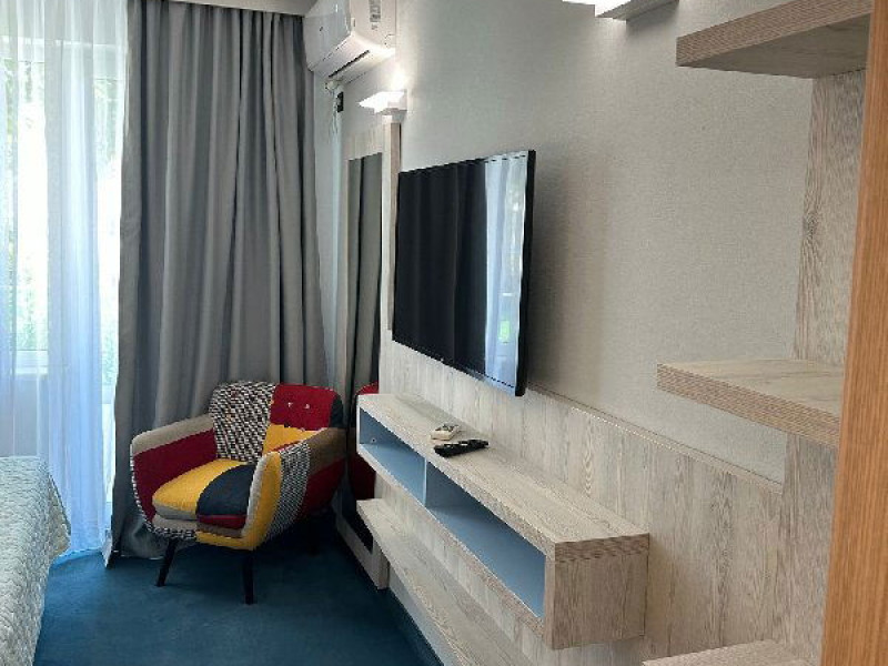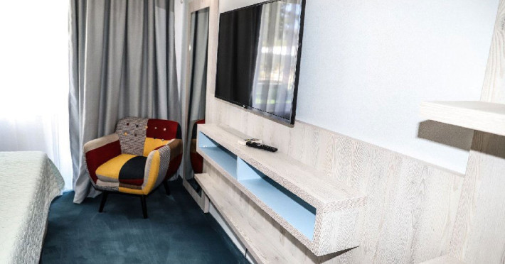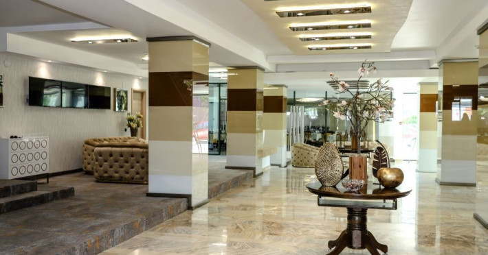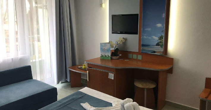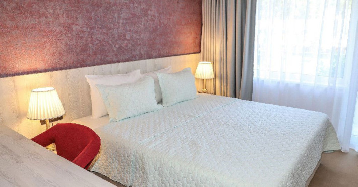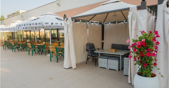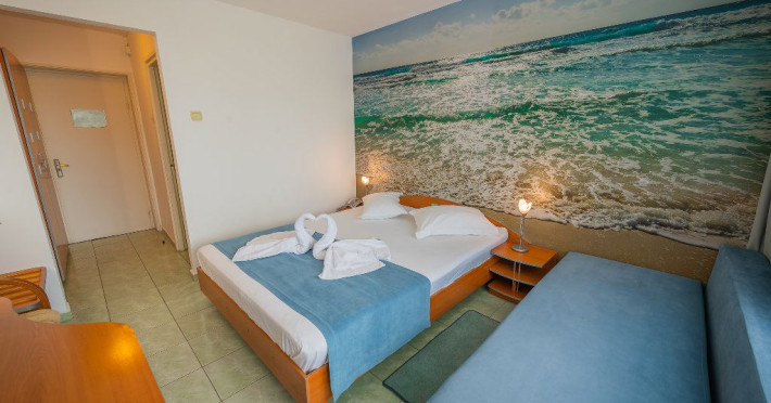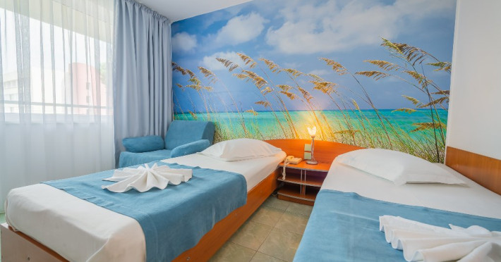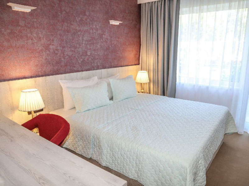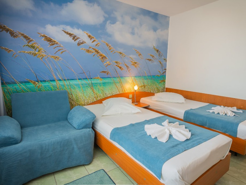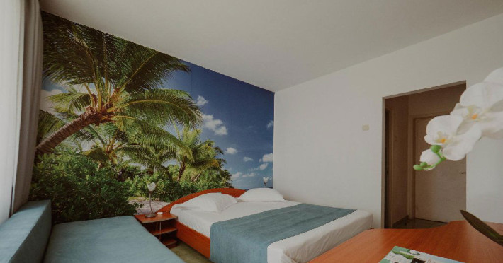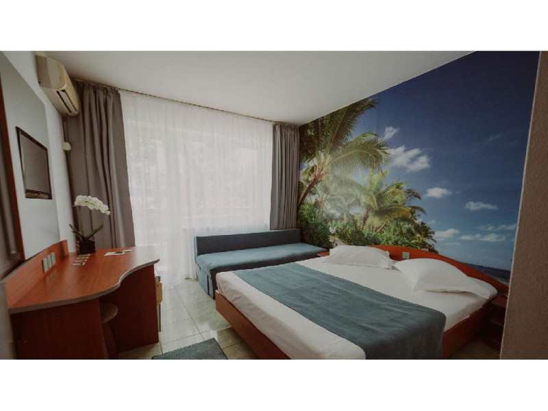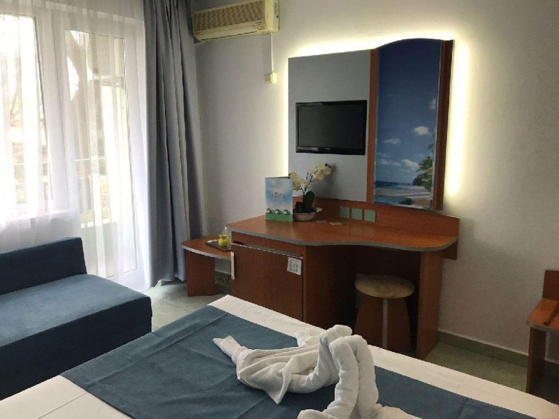 INFORMATII GENERALE Situat in nordul statiunii Mamaia, in zona verde, la 200m de apa marii, hotelul Dorna are o pozitie privilegiata cu vedere spre lacul Siutghiol si spre Marea Neagra. In imediata vecinatate a hotelului se afla terenuri de minigolf si tenis si un spatios loc de joaca pentru copii. Turistii beneficiaza pentru fiecare camera: 2 sezlonguri, umbrela pe plaja privata a hotelului FACILITATI UNITATE Dotari generale: restaurant, parcare publica -gratuita in limita disponibilitatilor, loc de joaca pentru copii, internet -wireless gratuit, pastrare obiecte de valoare, 3 nivele, bar. Hotelul dispune de plaja proprie (sezlongurile si umbrele de pe plaja sunt gratuite). Fitness/Wellness/Sport: Acces gratuit la piscina in aer liber pentru adulti si copii. Complexul ofera clientilor (gratuit - in limita disponibilitatilor): sezlonguri; umbrele si saltelute. Nu se poate face rezervare de sezlong. DESCRIERE CAMERE Camere cu balcon cu vedere la Marea Neagra sau la Lacul Siutghiol. Camerele Hotelului Dorna au aer condiionat, TV prin cablu, minibar i birou. Este disponibil acces gratuit la internet WiFi. LOCALIZARE Hotelul Dorna este situat la 200 de metri de plaja Ipanera din staiunea Mamaia, in nordul statiunii Mamaia. Plaja: larga, nisipoasa cu intrare lina in mare. SERVICII MASA Restaurantul Petit Jardin serveste o gama larga de mancaruri romanesti si internationale atat in interior, cat si pe terasa spatioasa. De asemenea, oaspetii pot savura o bautura langa piscina, pe terasa umbrita. Micul dejun este servit sub forma de bufet suedez. FACILITATI COPII 1 copil cu varsta 0-12 ani beneficiaza de cazare si mic dejun gartuit, in camera cu parintii.Datorita dinamicitatii domeniului disponibilitatea ofertelor se modifica de la un moment la altul. De aceea ofertele sunt valabile in limita locurilor disponibile. Agentia nu este responsabila pentru eventualele neconcordante care pot aparea intre informatiile privind tarifele si alte detalii din site si informatiile primite in agentie. In aceste cazuri vor avea prioritate, intotdeauna, informatiile primite in agentie.