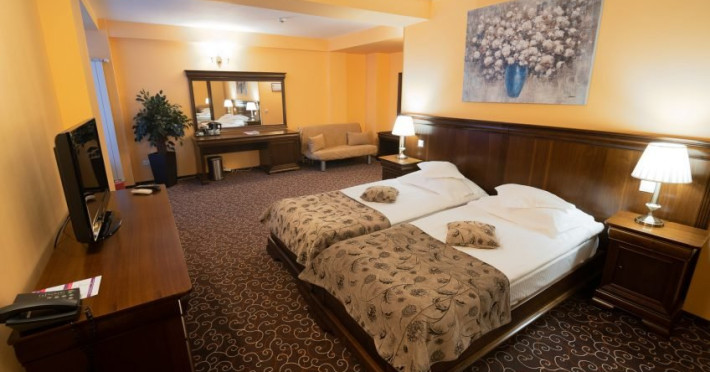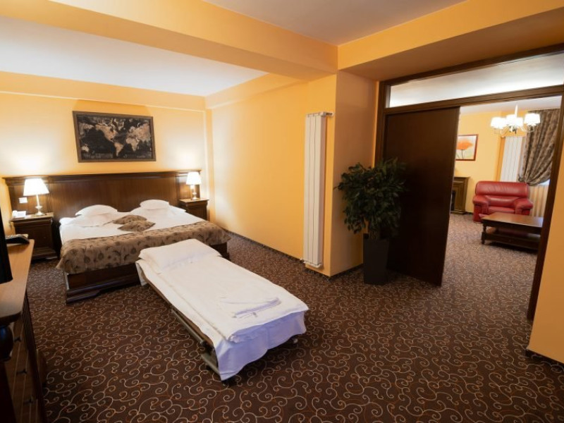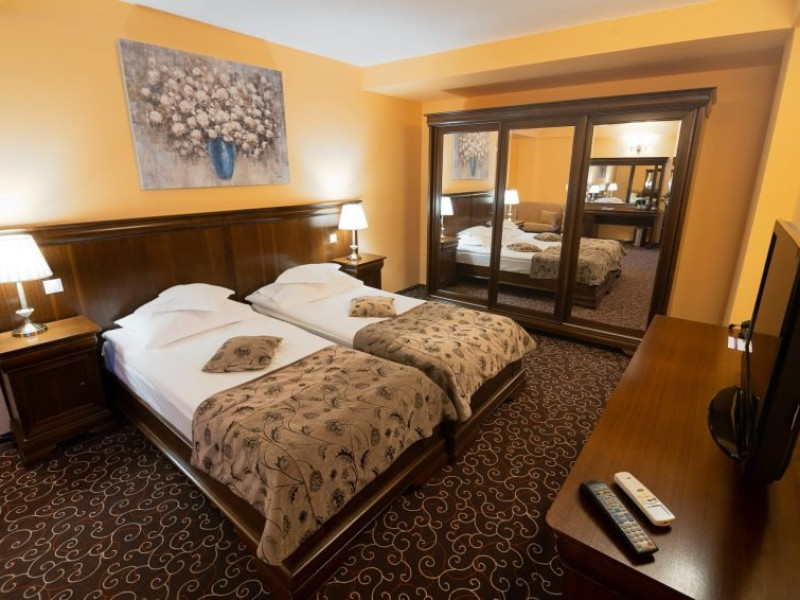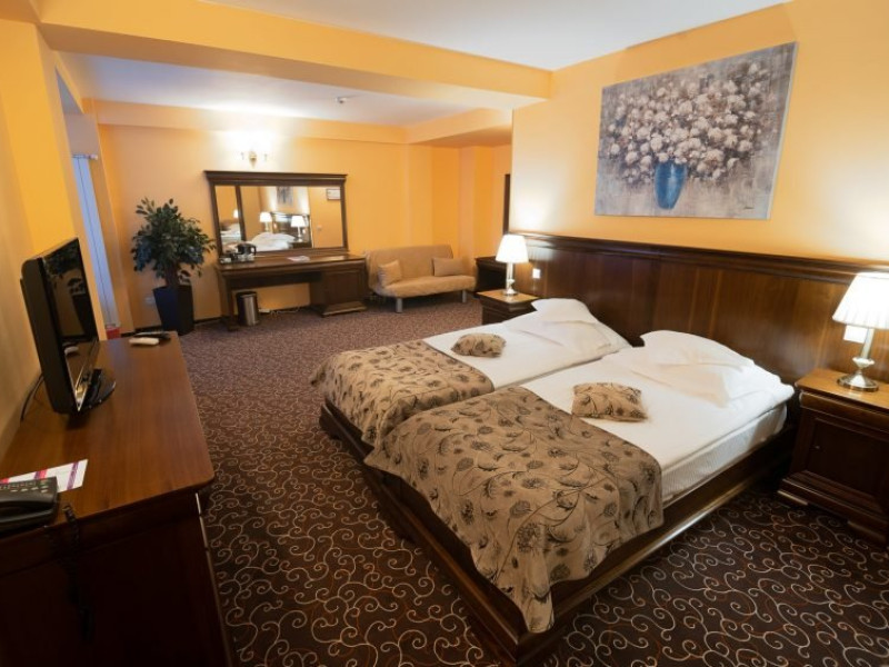 Include: cazare cu mic dejun, consultatie medicala gratuita, pachet de tratament standard (1 baie cu apa minerala/adult/zi, 2 proceduri electroterapie/adult/zi - Duminica nu se face tratament), acces la centrul Spa: piscina interioara, sauna uscata, sauna umeda, sala fitness, sauna salina, internet. Turistii trebuie sa prezinte adeverinta de la medicul de familie cu mentiunea apt pentru tratament balnear. Pachetul de proceduri nu poate fi schimbat cu alte servicii hoteliere. La receptia hotelului, turistii vor achita taxa hoteliera, stabilita de administratia locala in valoare de: 1,50 Lei/adulti/zi, 0,50 Lei/copii cu varsta peste 6 ani, studenti, pensionari/zi si taxa salvamont 5 Lei /persoana/sejur.