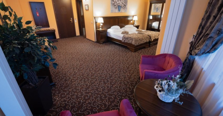 Hotelul Dorna de patru stele din Vatra Dornei este locul unde confortul dumneavoastra este asigurat de cele mai bune servicii si facilitati si unde va puteti bucura de o ambianta calda, relaxanta si rafinata, indiferent ca sunteti intr-o excursie sau din motive de afaceri. Situat in inima frumoasei statiuni Vatra Dornei, la baza Partiei Parc, Hotelul Dorna pune la dispozitia dumneavoastra 40 spatii de cazare dotate modern, camere tip Standard sau Superior, Apartamente Standard, Apartamente Superior si Suite Superior.