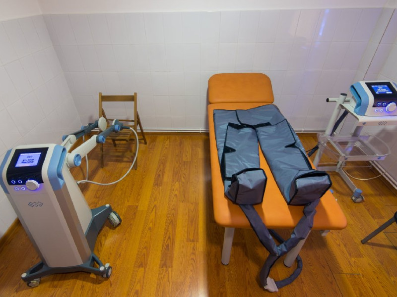 Proceduri: electroterapie, socterapie, magnetoterapie, laser, masaj, gimnastica medicala. Procedurile bai carbogazoase (naturale), bai de plante, parafina sunt inacesibile pana la noi reglementari legislative.