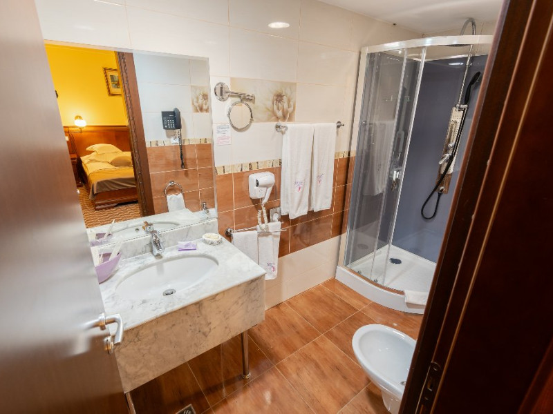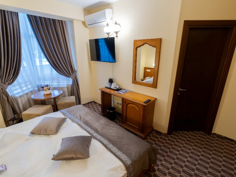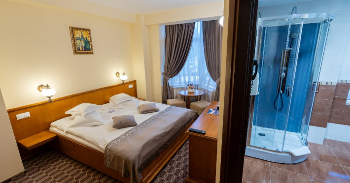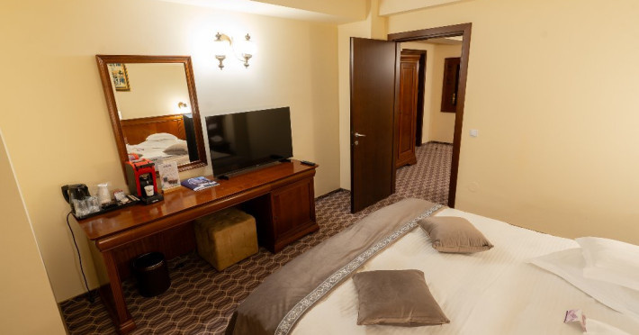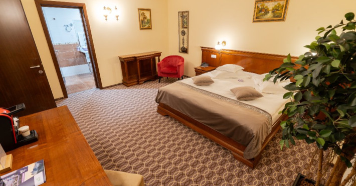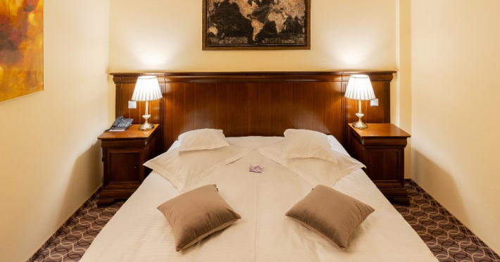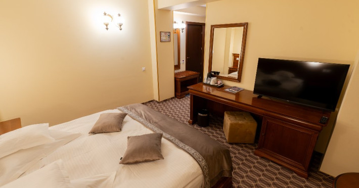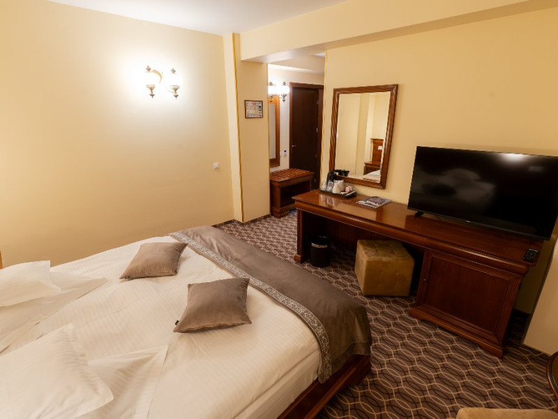 Camera dubla superior cu pat matrimonial. Suprafata acestor tipuri de camere variaza de la 18 metri patrati pana la 21 mp.