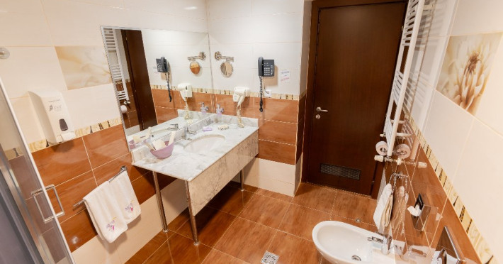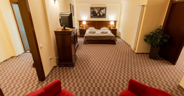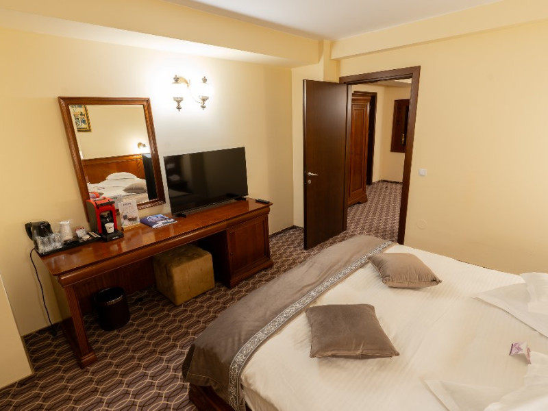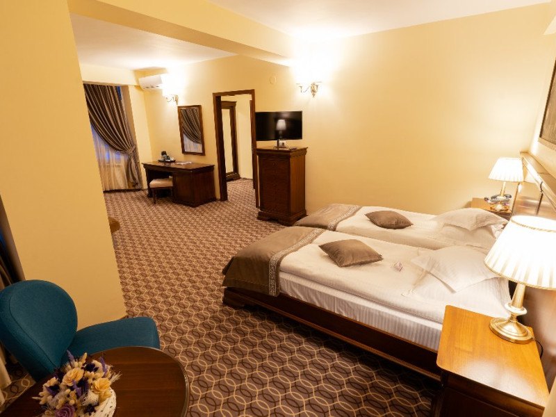 Camera dubla superior cu paturi twin (posibilitate de unire paturi fara spatiu intre ele). Suprafata unei camere este de aproximativ 30 mp.