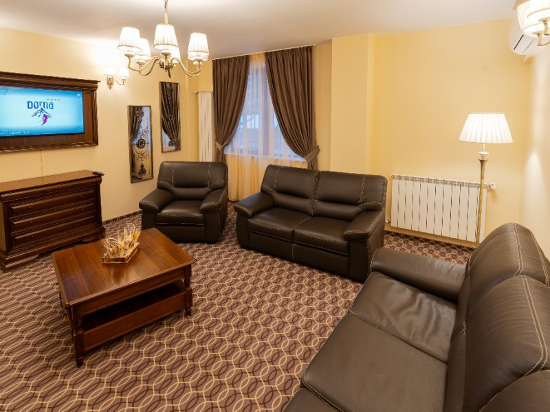 Hotelul Dorna de patru stele din Vatra Dornei este locul unde confortul dumneavoastra este asigurat de cele mai bune servicii si facilitati si unde va puteti bucura de o ambianta calda, relaxanta si rafinata, indiferent ca sunteti intr-o excursie sau din motive de afaceri. Situat in inima frumoasei statiuni Vatra Dornei, la baza Partiei Parc, Hotelul Dorna pune la dispozitia turistilor 40 spatii de cazare dotate modern, camere tip Standard sau Superior, Apartamente Standard, Apartamente Superior si Suite Superior.