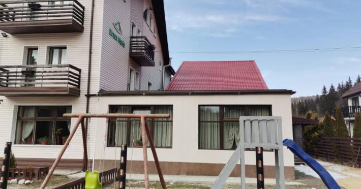 Restaurantul tip bufet servește preparate din bucătăria romanească și internațională, iar la cerere este disponibilă demipensiune. Hotelul are o sală de conferințe.