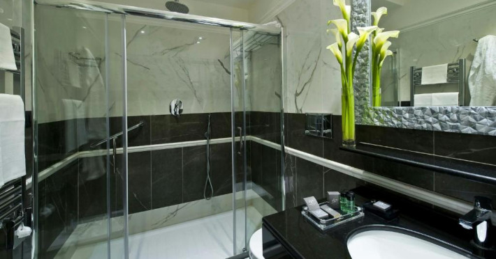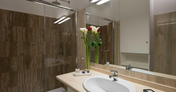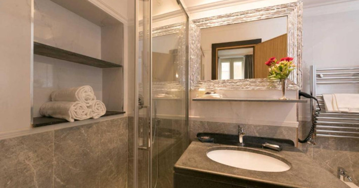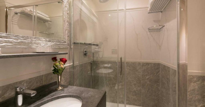 Camerele au TV cu ecran plat cu canale prin satelit si baie din marmură cu uscător de păr si articole de toaletă gratuite.