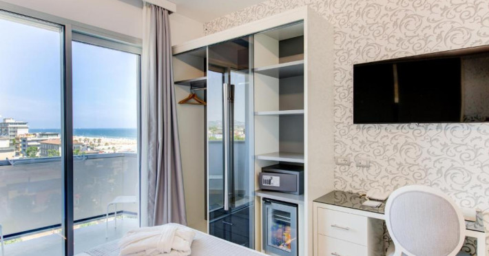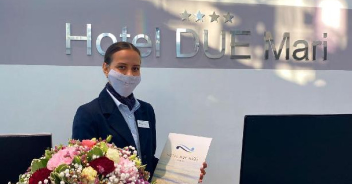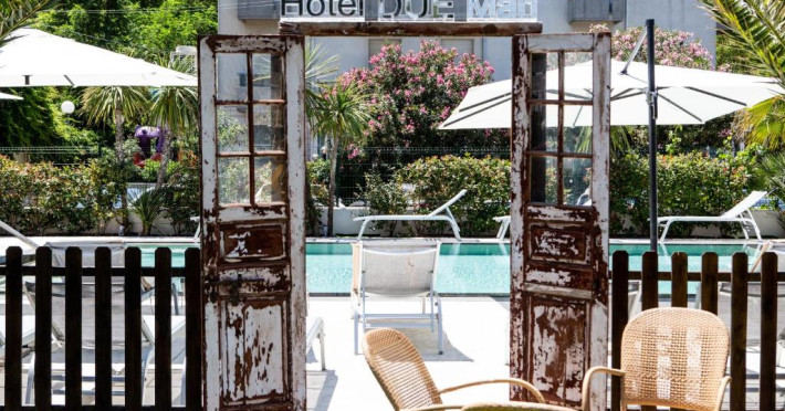 Due Mari se află la malul mării din Miramare și oferă restaurant cu specific regiunii Romagna și piscină in aer liber. Oaspeții beneficiază gratuit de WiFi, parcare și biciclete. Camerele au balcon cu vedere la Marea Adriatică sau piscină.