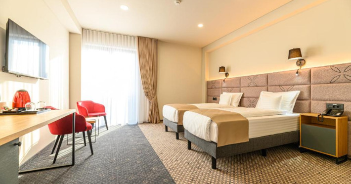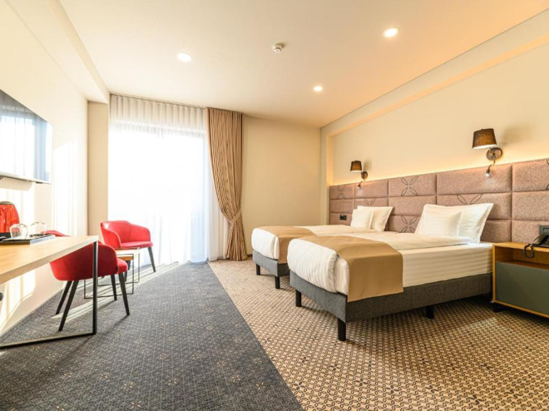 The hotel will provide guests with air-conditioned rooms offering a desk, a kettle, a minibar, a safety deposit box, a flat-screen TV and a private bathroom with a shower. At Hotel DUKAT the rooms have bed linen and towels. Buffet and continental breakfast options are available each morning at the accommodation. Guests at Hotel DUKAT will be able to enjoy activities in and around Gura Humorului, like skiing. Adventure Park Escalada is 1.3 km from the hotel, while Humor Monastery is 5.5 km from the property. The nearest airport is Suceava International Airport, 51 km from Hotel DUKAT. What#039;s nearby Olga Kobyleanska 100 m Adventure Park Escalada 1 km Parcul Central 17 km Restaurants amp; cafes RestaurantLa Bomba 40 m RestaurantLa Bomba Pizzerie 40 m Cafe/barLa TuÈu 50 m Natural beauty MountainPasul Ciumârna 29 km Ski lifts Partia Soimul 1.5 km RarÄu 1 26 km Babyski Parc Drag Lift 47 km Public transport TrainGura Humorului OraÈ 700 m TrainGura Humorului 4 km Closest airports Suceava International Airport 38 km Chernivtsi International Airport 77 kmDatorita dinamicitatii domeniului disponibilitatea ofertelor se modifica de la un moment la altul. De aceea ofertele sunt valabile in limita locurilor disponibile. Agentia nu este responsabila pentru eventualele neconcordante care pot aparea intre informatiile privind tarifele si alte detalii din site si informatiile primite in agentie. In aceste cazuri vor avea prioritate, intotdeauna, informatiile primite in agentie.