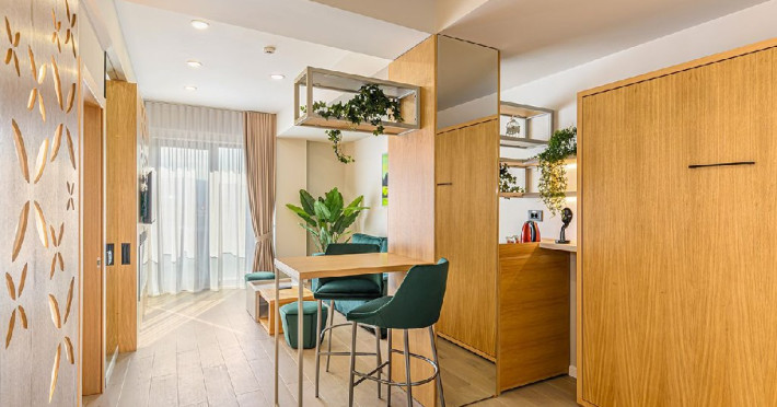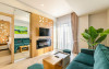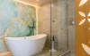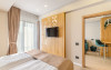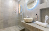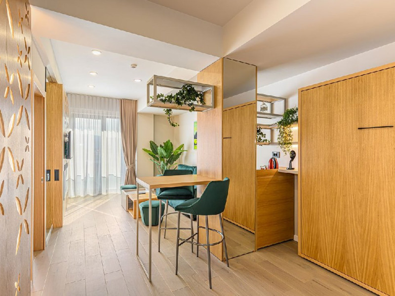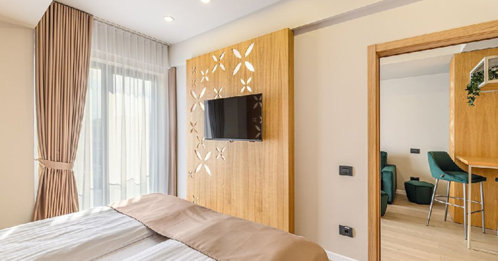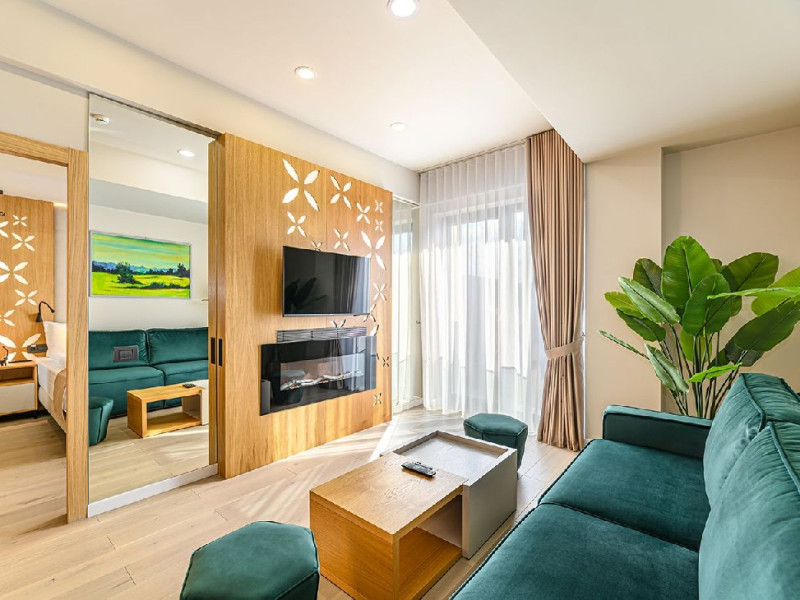 Apartament Junior Suite are o suprafata de 40 m2, cu aer conditionat, uscator de par, minibar, telefon si TV LCD, halat de baie, fierbator, papuci, semineu. Dimensiune pat: 180 cm x 200 cm si 160 cm x 200 cm. Apartamentul dispune de 3 bai. Pentru ca rasfatul sa fie total, baia cu cada design amplasata in fata unui perete din granit turquoise cu insertii albe si negre, apartine exclusiv dormitorului, este la fel de eleganta, cu placi de granit crem, accesorii metalice luxoase, si un decor care sa inspire relaxarea prin luminile ambientale care pot fi setate. Alte 2 bai din care una de serviciu si una dotata cu dus sunt si ele parte din elegantul apartament.