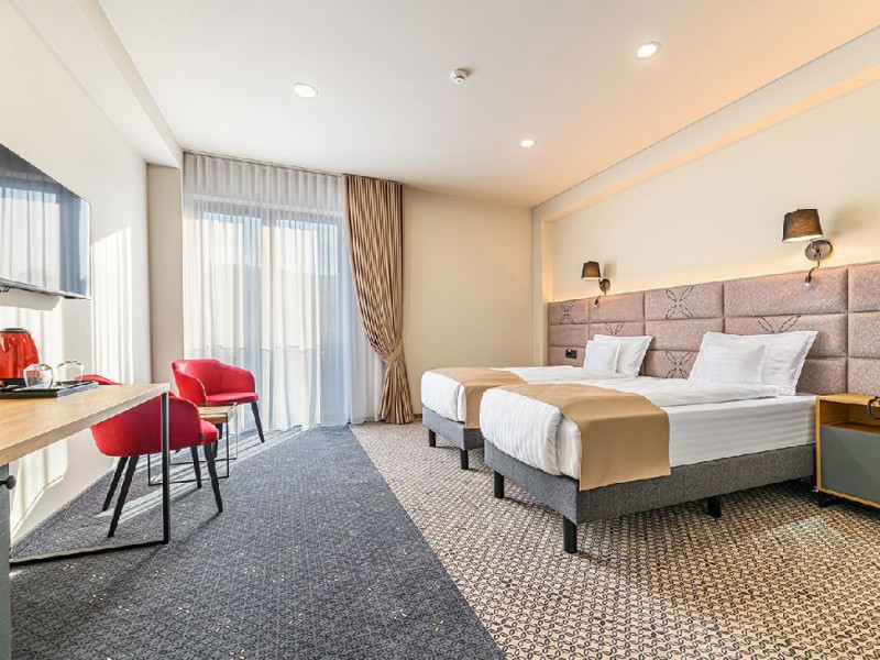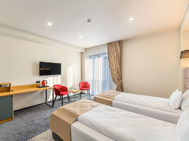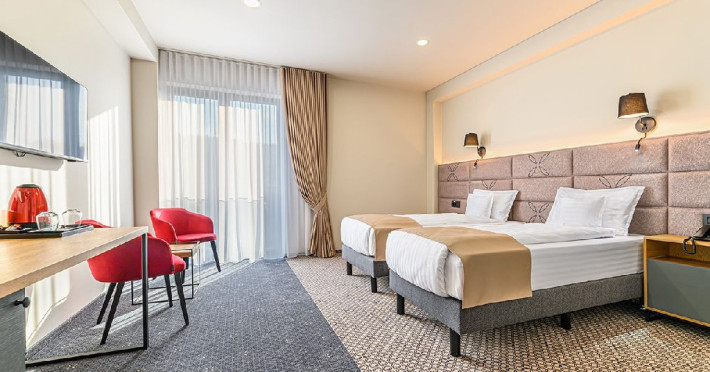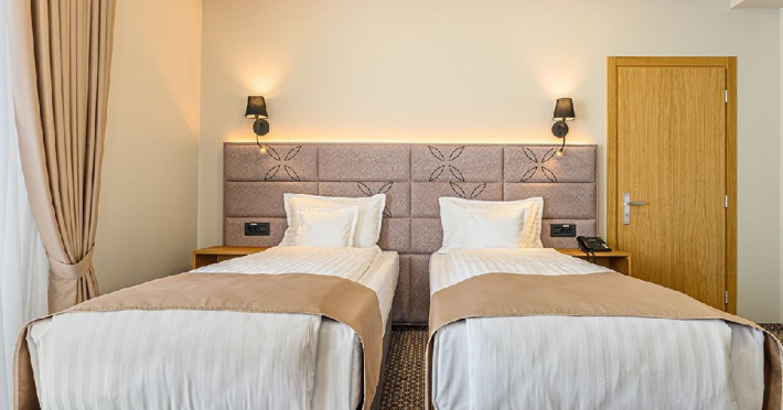 Camera dubla Superioara Twin are o suprafata de 26 m2 toate cu aer conditionat, dotate cu baie cu dus, uscator de par, minibar, telefon si TV LCD, halat de baie, fierbator, papuci. Dimensiune pat: 2 x 90 cm x 200 cm.