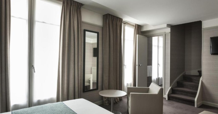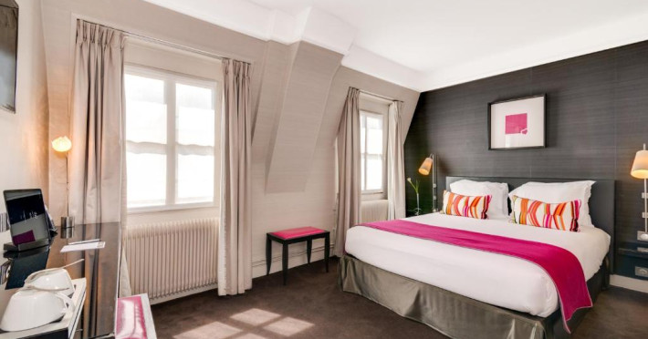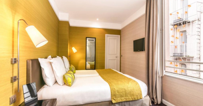 Aflat in cartierul plin de viată Marais din centrul Parisului, acest hotel de design include o sală de fitness si o saună. Oferă camere dotate cu aer conditionat, acces gratuit la Wi-Fi si minibar.
