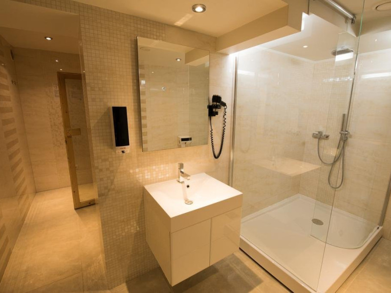 Fiecare camera este dotata cu LCD, televiziune prin cablu, telefon cu acces la liniile internationale si internet, dusuri si cazi cu hidromasaj, minibar, acces pe baza de cartela electronica si reflecta pe deplin calitatea, bunul gust si rafinamentul unui hotel de patru stele la standarde europene.