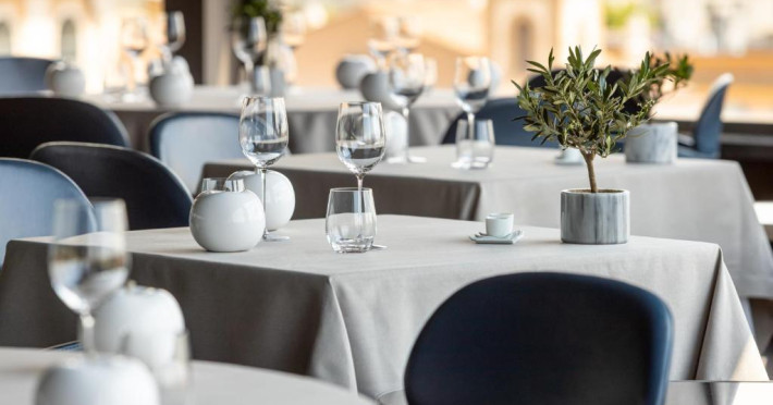 Oferind vedere panoramică, restaurantul premiat, La Terrazza, servește preparate din bucătăria gourmet mediteraneană alături de cele mai rafinate vinuri, pentru cină. Il Giardino Ristorante, este deschis atat pentru pranz cat și pentru cină. Micul dejun este oferit sub forma unui bufet generos.