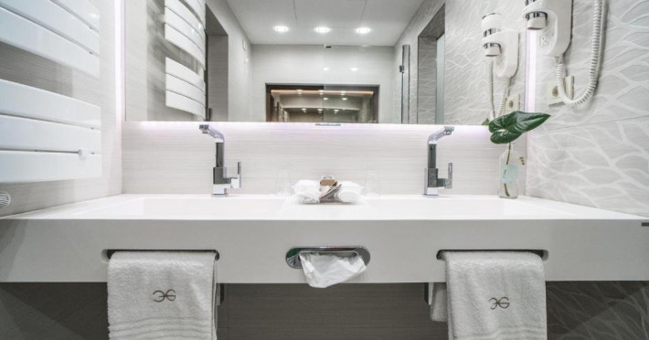 Suprafata aprox.30 mp, etaj 4. Camera este echipata cu baie cu dus, WC, minibar, cafetiera, TV Led 80 cm, televiziune digitala 200 canale, internet de mare viteza, control acces, climatizare si iluminat inteligent. Camera este dotata cu pat 160200 cm, saltea ergonomica 30 cm, perne antialergice, lenjerie premium, halate de baie, pardoseala parchet ecologic.