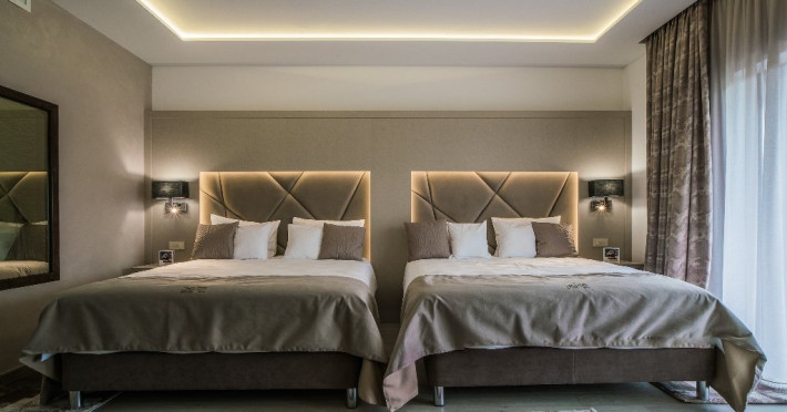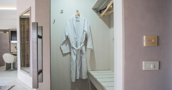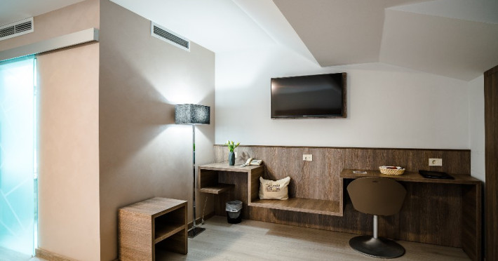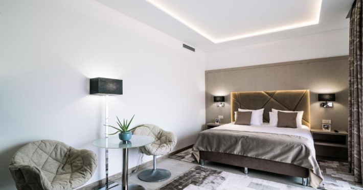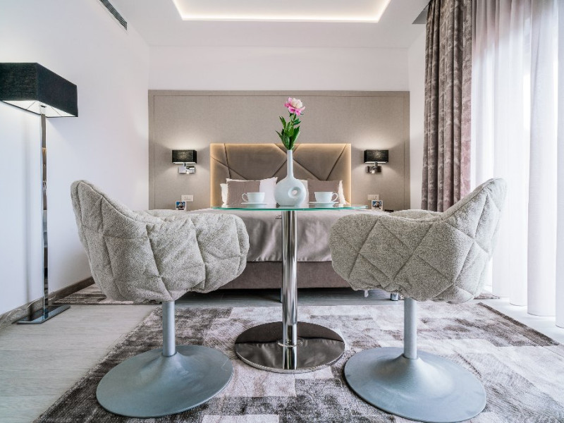 Suprafata aprox.30 mp, etaj 4. Camera este echipata cu baie cu dus, WC, minibar, cafetiera, TV Led 80 cm, televiziune digitala 200 canale, internet de mare viteza, control acces, climatizare si iluminat inteligent. Camera este dotata cu pat 160200 cm, saltea ergonomica 30 cm, perne antialergice, lenjerie premium, halate de baie, pardoseala parchet ecologic.