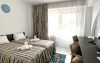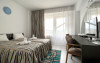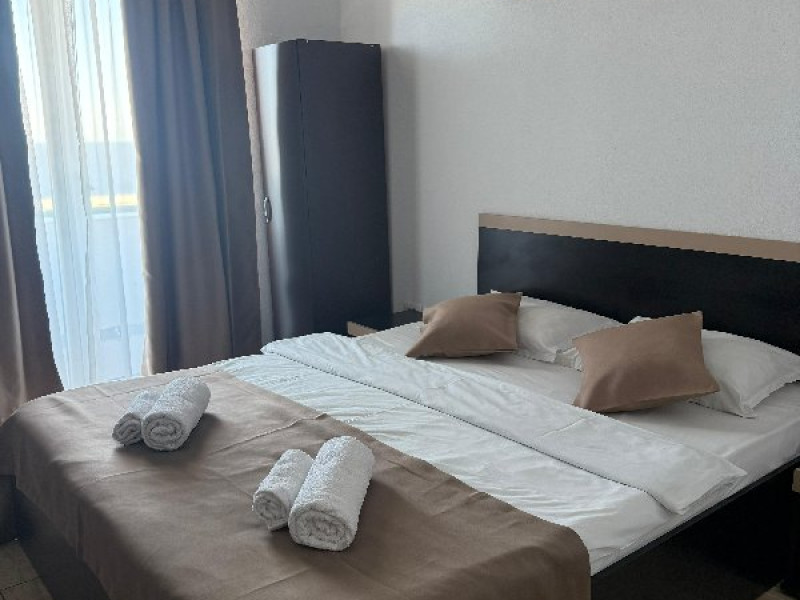 Dubla Superior: dispune de un pat matrimonial si de o canapea extensibila (de 2 locuri ). Camera de aproximativ 26 mp, aer conditionat, TV, frigider, wifi, baie proprie, balcon, masa si scaune pentru balcon. Camerele au vedere la piscina si la mare.